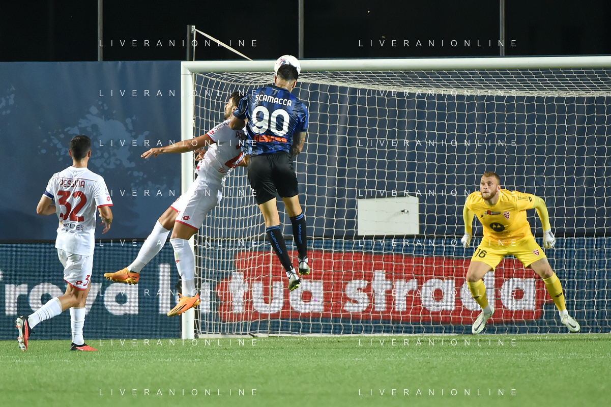 TVRG Atalanta vs Monza nella foto Gianluca Scamacca (Atalanta) tra Pablo Mari' (Monza) SX e Armando Izzo (Monza) DX Bergamo 02-09-2023 Gewiss Stadium - Stadio Atleti Azzurri d'Italia Campionato Serie A TIM - 3a giornata foto Roberto Garavaglia/ag. Aldo Liverani sas