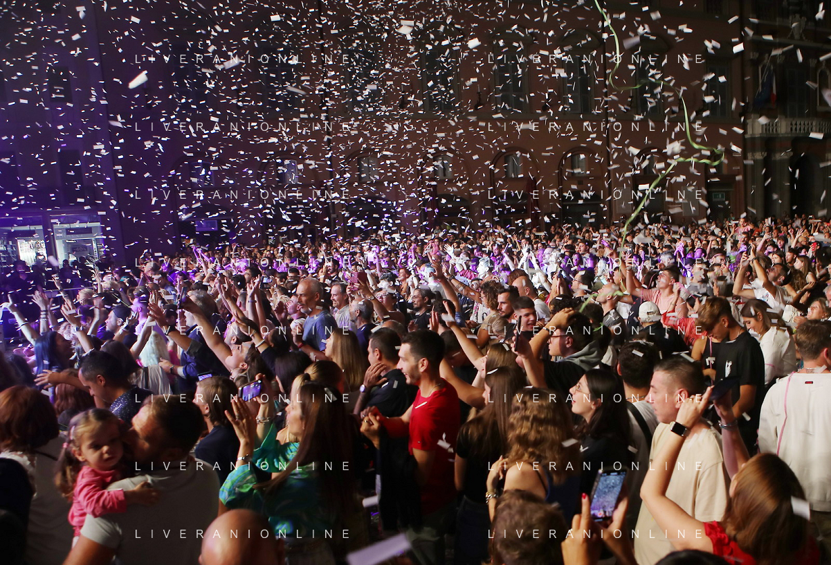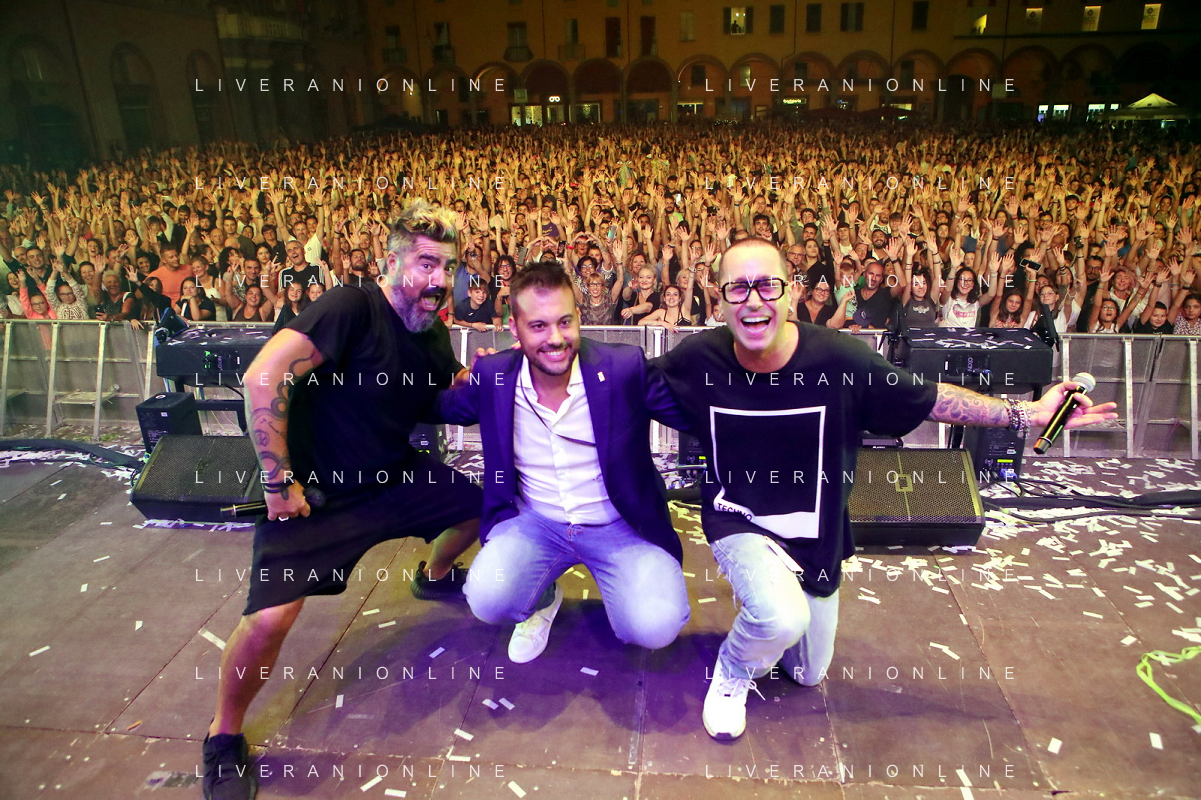 IMOLA 02 09 2023 IMOLA IN MUSICA CONCERTO DI DJ PAOLO NOIESE NELLA FOTO DA SINISTRA PAOLO NOISE SINDACO DI IMOLA MARCO PANIERI FOTO GIANNI SANNA-AG ALDO LIVERANI SAS