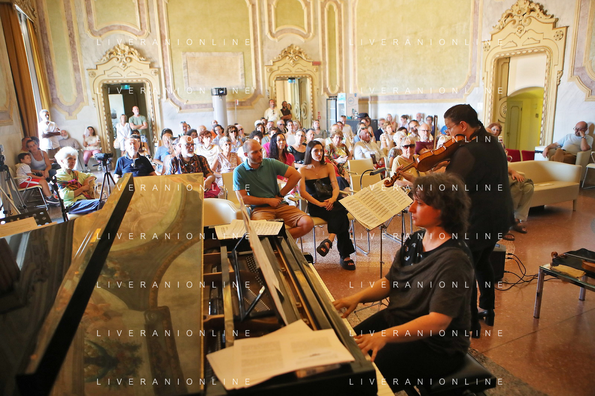 IMOLA 03 09 2023 IMOLA IN MUSICA CONCERTO LA SAGGEZZA DEL LEGNO L'ARTE NELLE MANI STORIA SULLA VITA DI LUIGI E PRIMO CONTAVALLI LIUTAII DI IMOLA NELLA FOTO ILARIA TRAMANNONI PIANOFORTE , ILARIA TASSINARI VIOLINO,MAILA FOCANTE E LUCA MENGOLI FOTO GIANNI SANNA-AG ALDO LIVERANI SAS