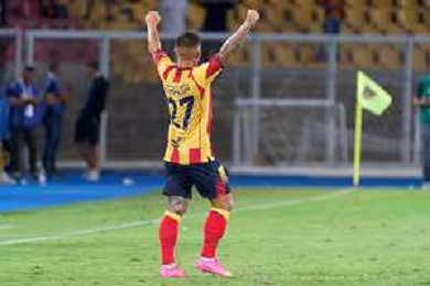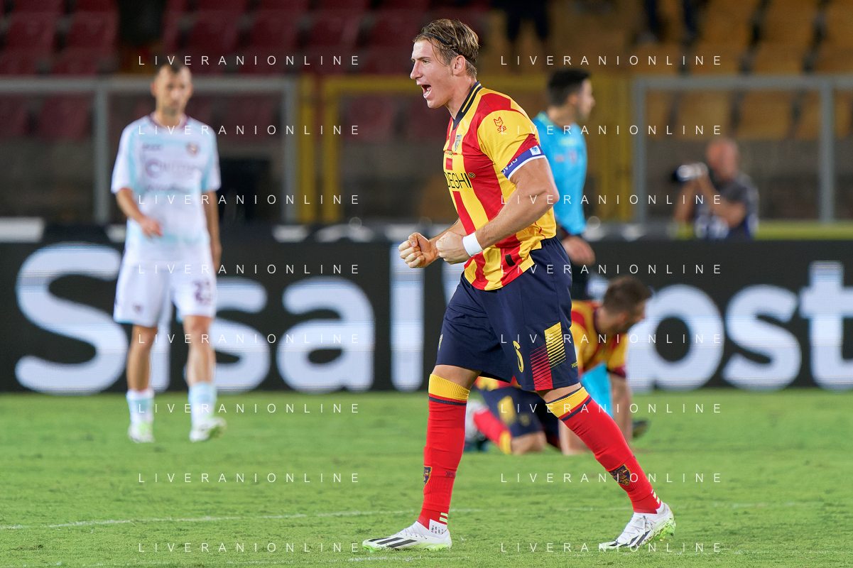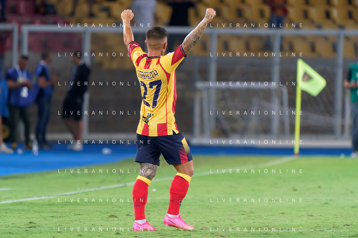 Gabriel Strefezza (US Lecce) celebrates after scoring a goal during the Italian soccer Serie A match US Lecce vs US Salernitana 1919 on September 3, 2023 at Via del Mare Stadium in Lecce, Italy. Photo by Emmanuele Mastrodonato/ag. Aldo Liverani sas