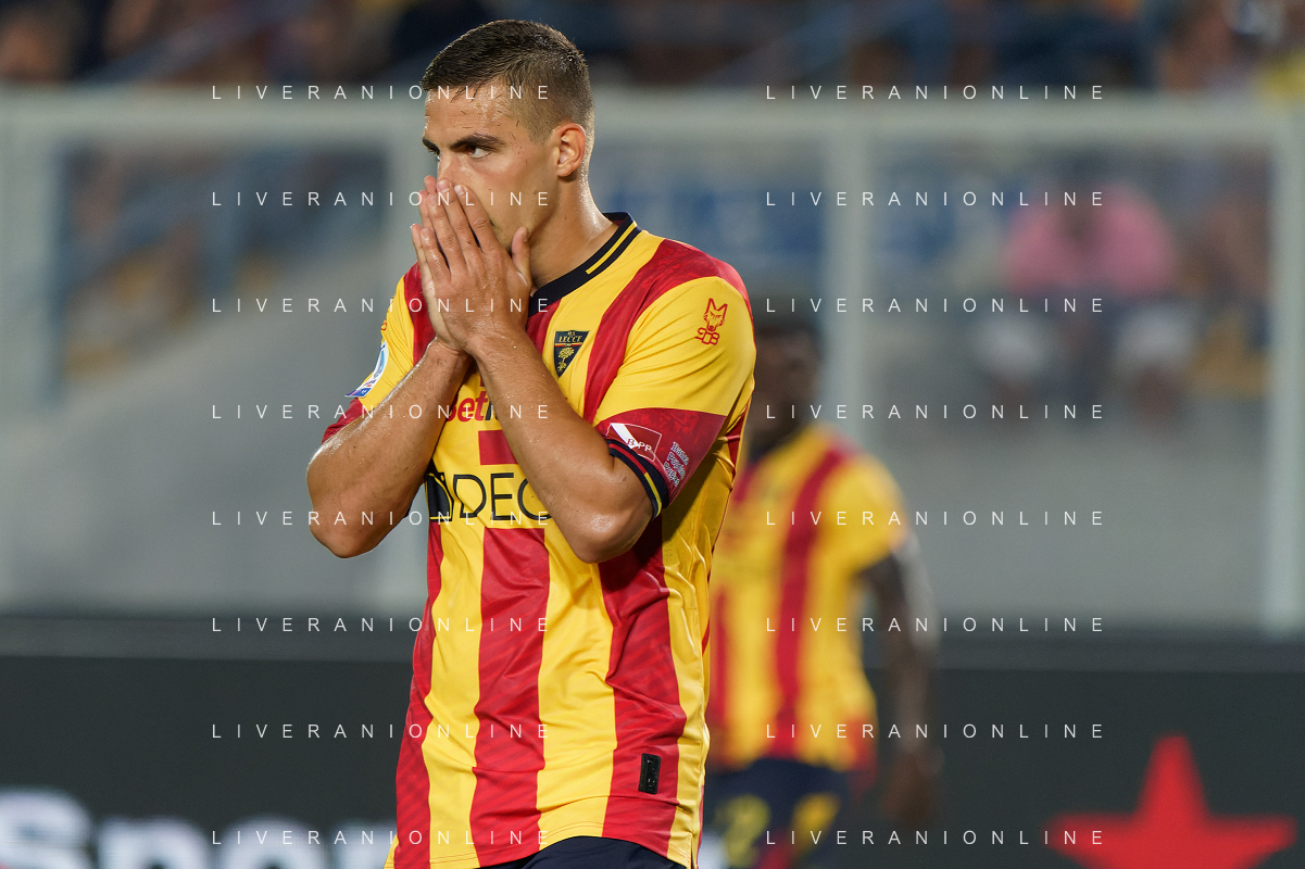 Nikola Krstovic (US Lecce) during the Italian soccer Serie A match US Lecce vs US Salernitana 1919 on September 3, 2023 at Via del Mare Stadium in Lecce, Italy. Photo by Emmanuele Mastrodonato/ag. Aldo Liverani sas/AGENZIA ALDO LIVERANI SAS