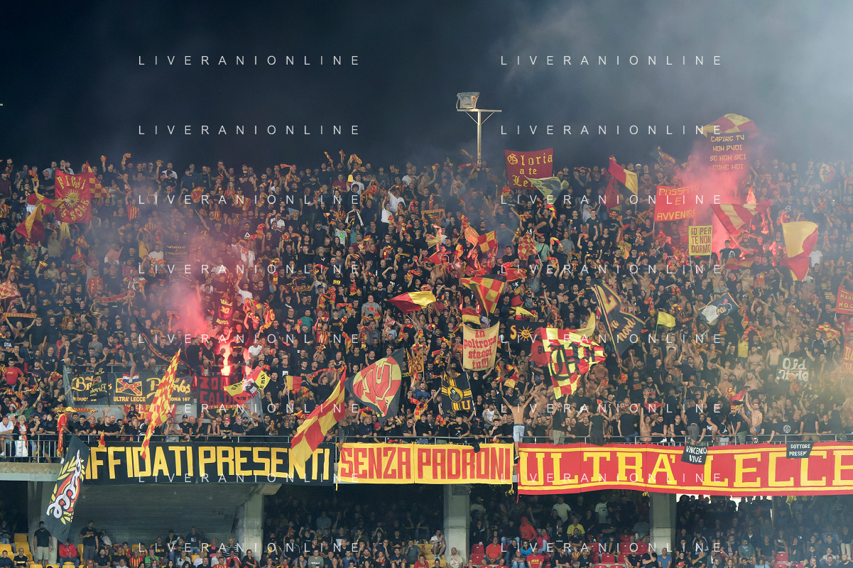 Supporters of US Lecce during the Italian soccer Serie A match US Lecce vs US Salernitana 1919 on September 3, 2023 at Via del Mare Stadium in Lecce, Italy. Photo by Emmanuele Mastrodonato/ag. Aldo Liverani sas/AGENZIA ALDO LIVERANI SAS