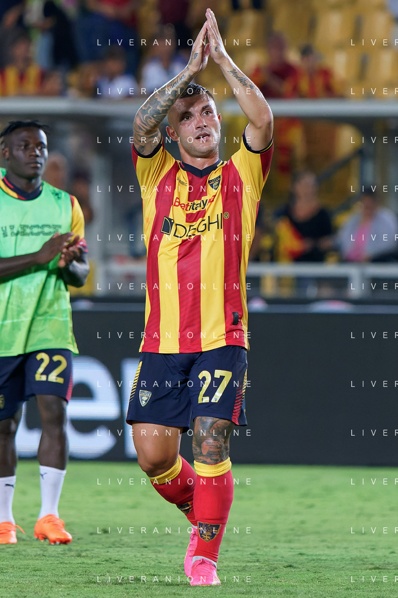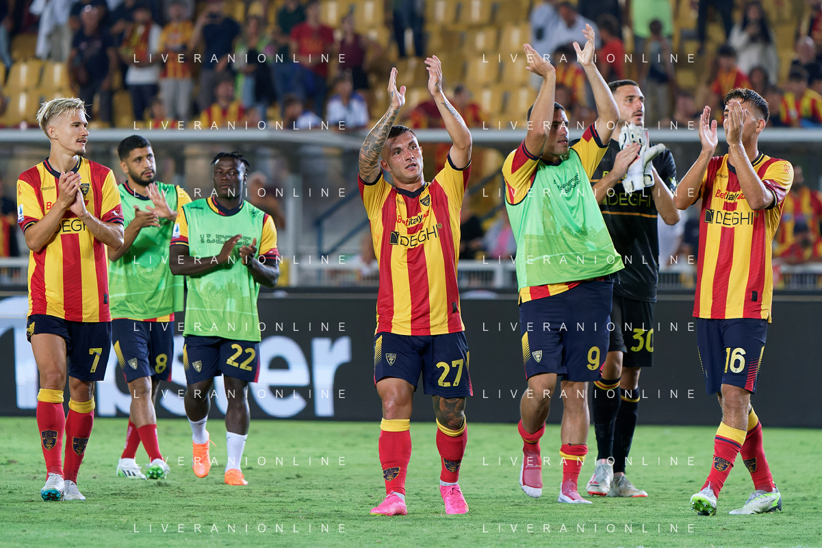 Roberto Piccoli (US Lecce) applauds fans during the Italian soccer Serie A match US Lecce vs US Salernitana 1919 on September 3, 2023 at Via del Mare Stadium in Lecce, Italy. Photo by Emmanuele Mastrodonato/ag. Aldo Liverani sas/AGENZIA ALDO LIVERANI SAS