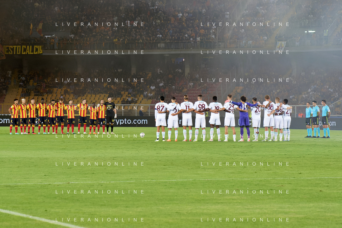 Players of the two teams prior to the minute of silence in memory of the victims of the Brandizzo accident during the Italian soccer Serie A match US Lecce vs US Salernitana 1919 on September 3, 2023 at Via del Mare Stadium in Lecce, Italy. Photo by Emmanuele Mastrodonato/ag. Aldo Liverani sas/AGENZIA ALDO LIVERANI SAS
