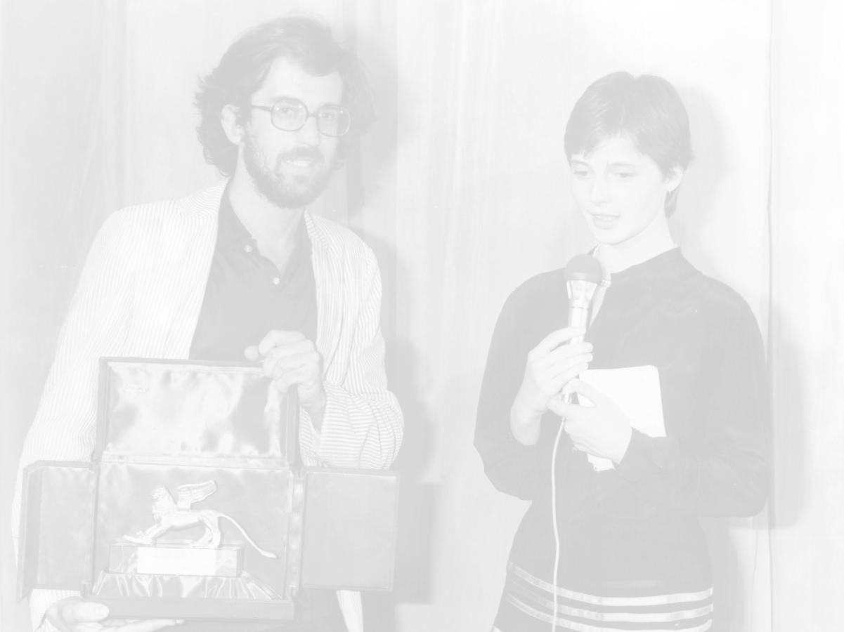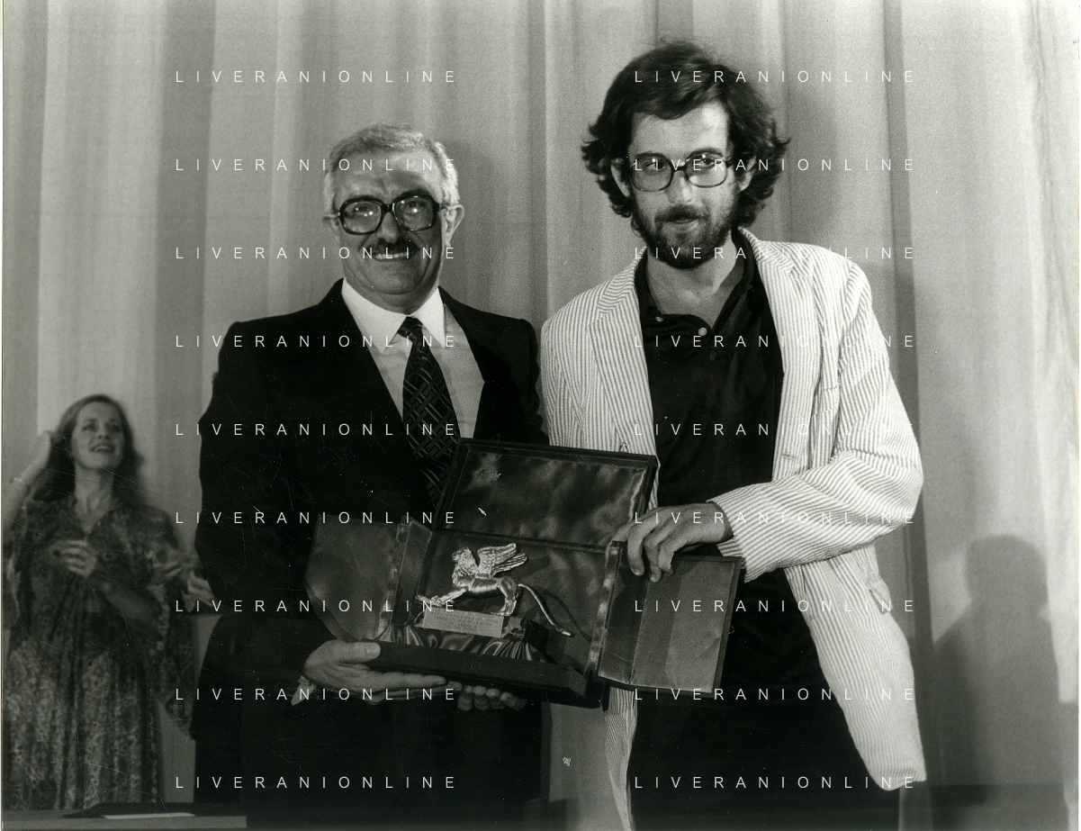 NEG-RETROSPETTIVA NANNI MORETTI REGISTA NELLA FOTO NANNI MORETTI CON ISABELLA ROSSELLINI A VENEZIA A VENEZIA NELL'ANNO 1979 PREMIATO CON IL LEONE D'ORO AG ALDO LIVERANI SAS