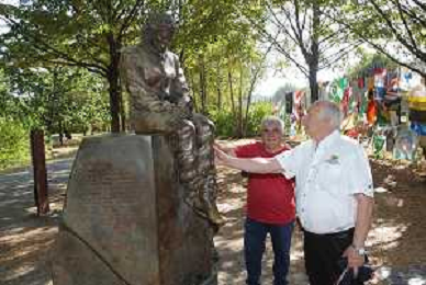 IMOLA 07 09 2023 AUTODROMO ENZO E DINO FERRARI JUAN E RUBEN FANGIO I FIGLI DEL CAMPIONE DELLA FORMULA 1 JUAN MANUEL FANGIO NELLA FOTO JUAN E RUBEN FANGIO AL MONUMENTO DI AYRTON SENNA FOTO GIANNI SANNA-AG ALDO LIVERANI SAS