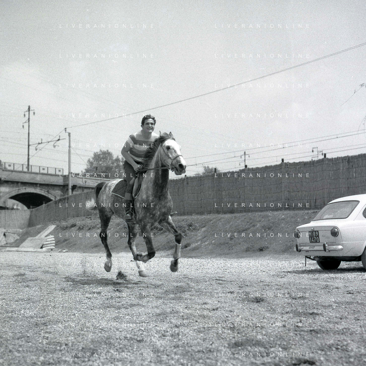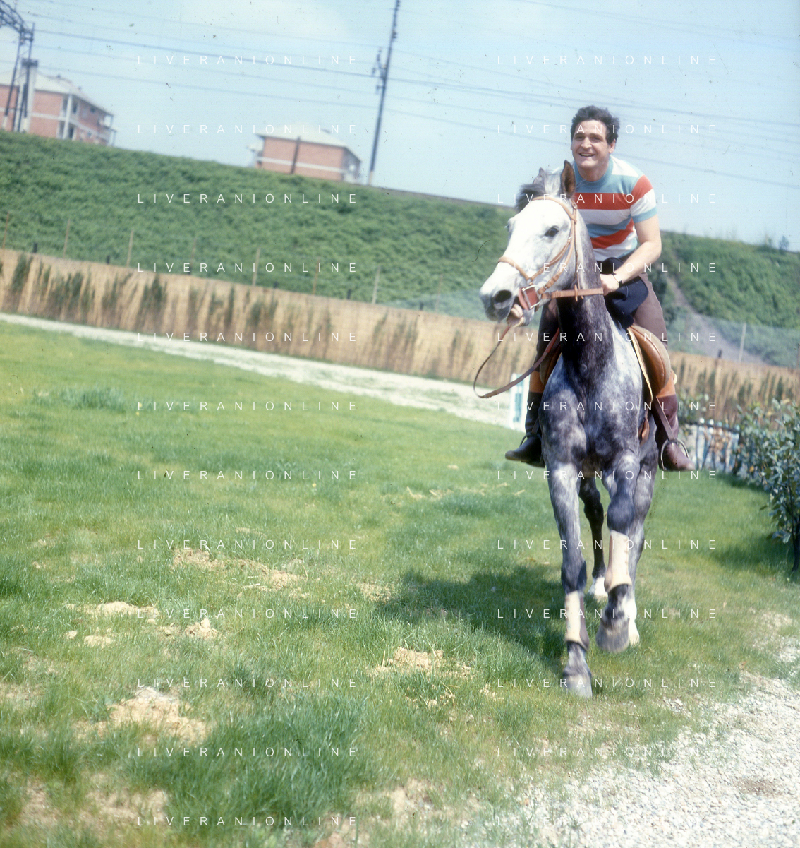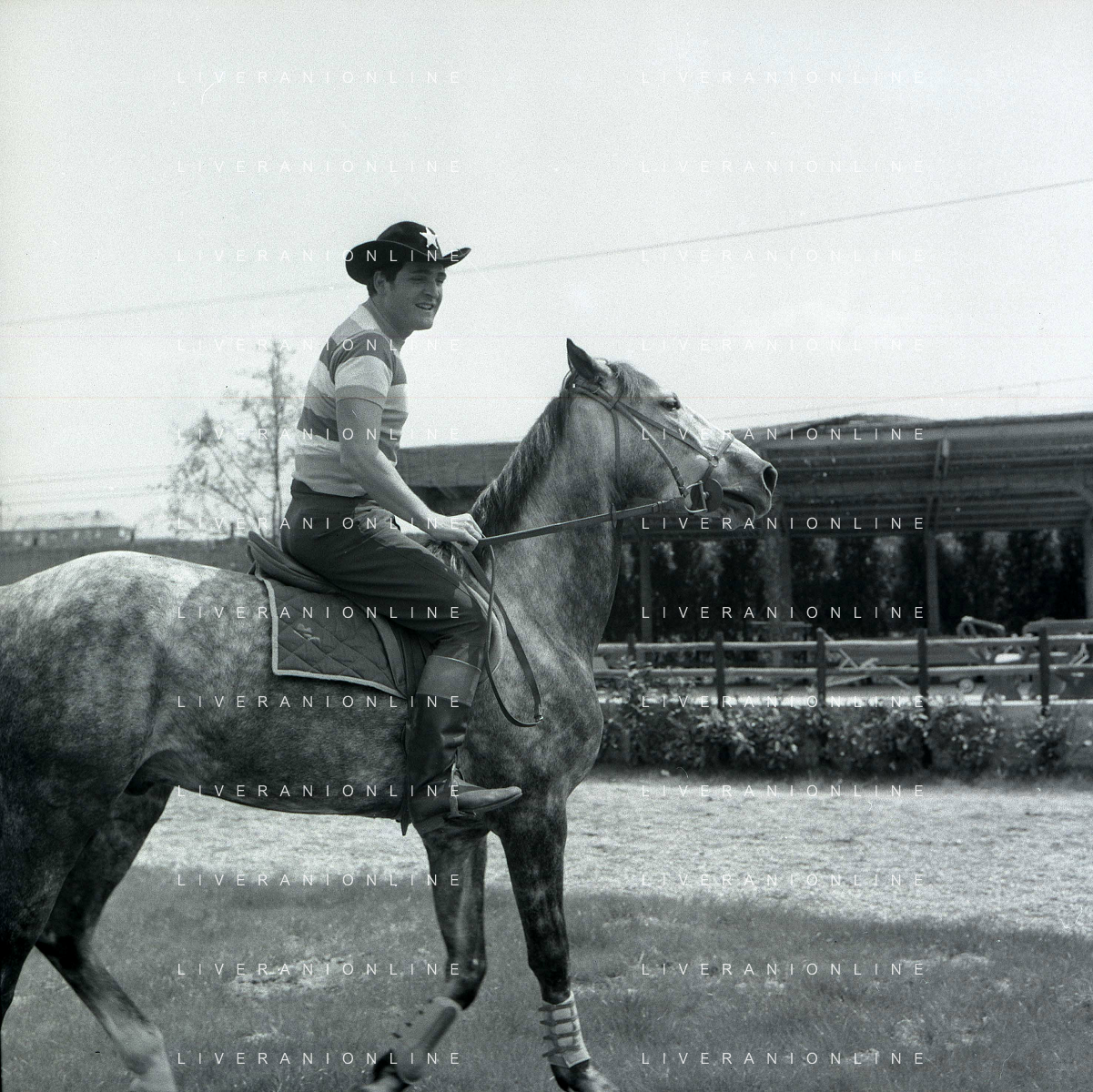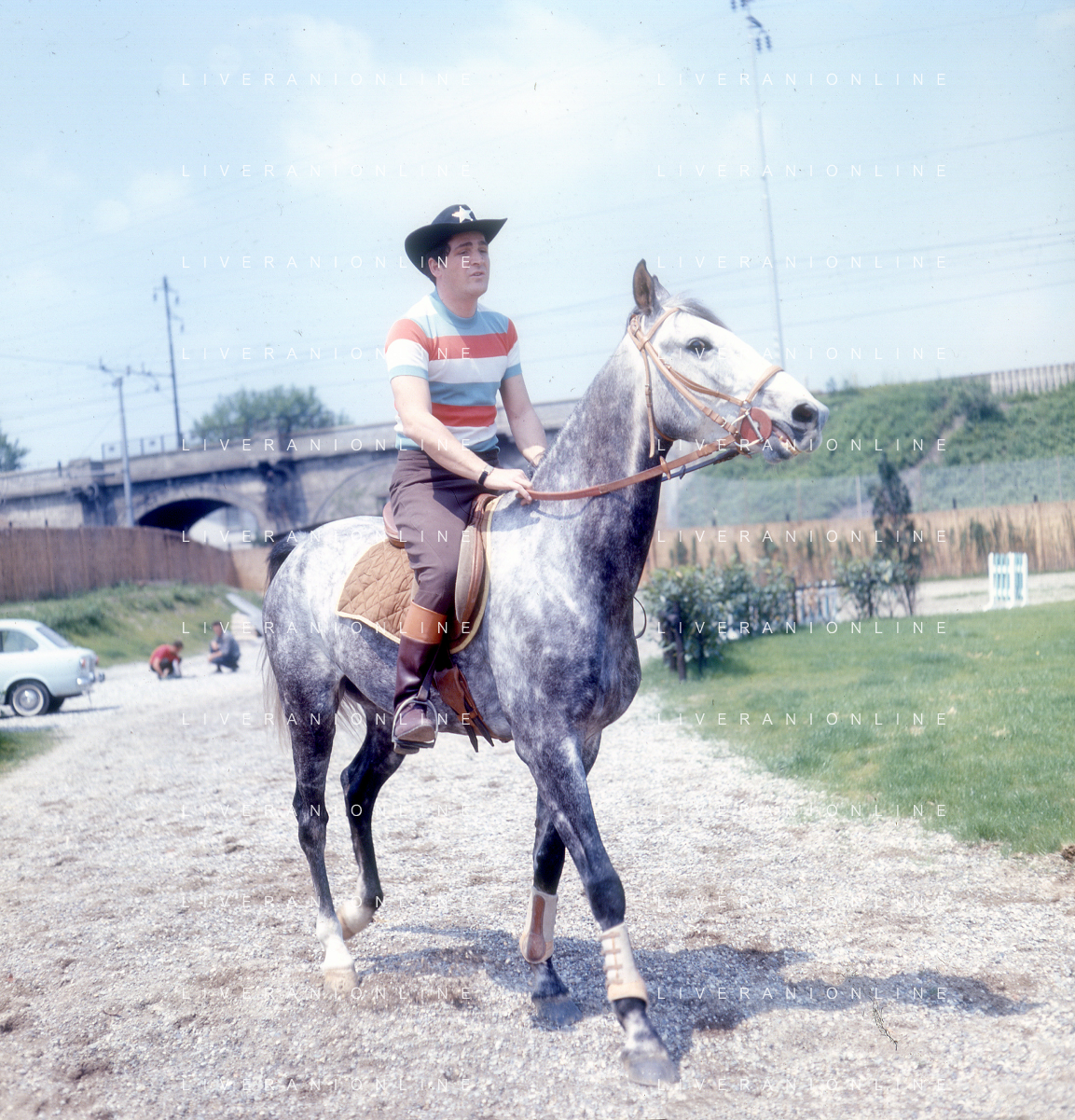 NEG-RETROSPETTIVA GINO SANTERCOLE ATTORE E CANTANTE NELLA FOTO GINO SANTERCOLE AL MANEGGIO A MILANO NELL'ANNO 1967 AG ALDO LIVERANI SAS