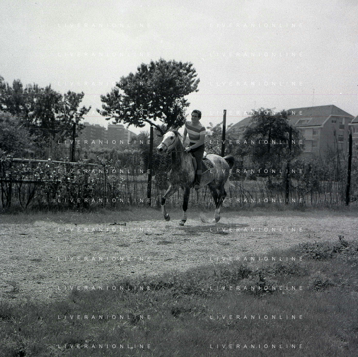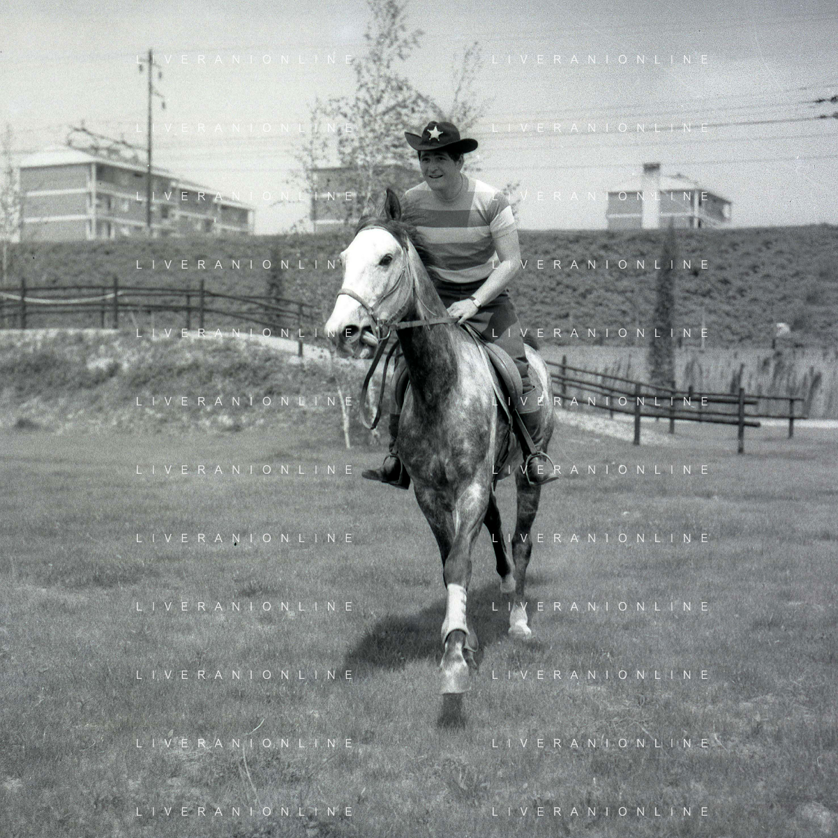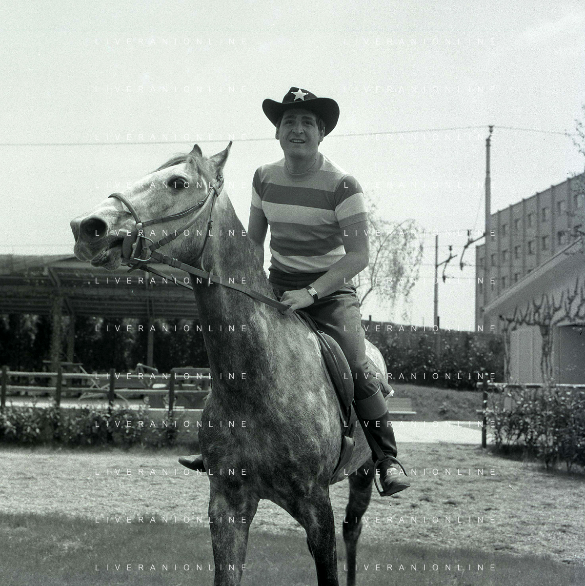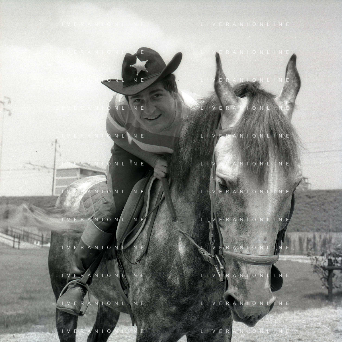 NEG-RETROSPETTIVA GINO SANTERCOLE ATTORE E CANTANTE NELLA FOTO GINO SANTERCOLE AL MANEGGIO A MILANO NELL'ANNO 1967 AG ALDO LIVERANI SAS
