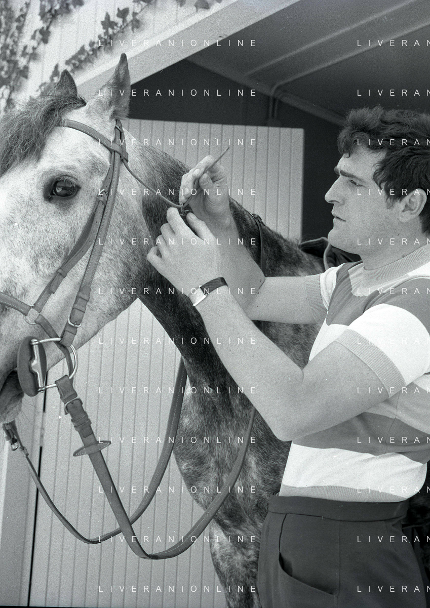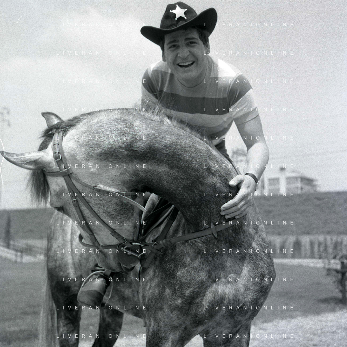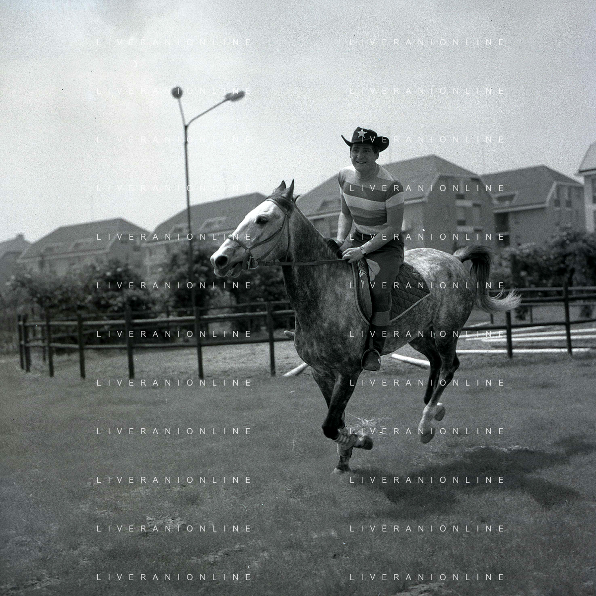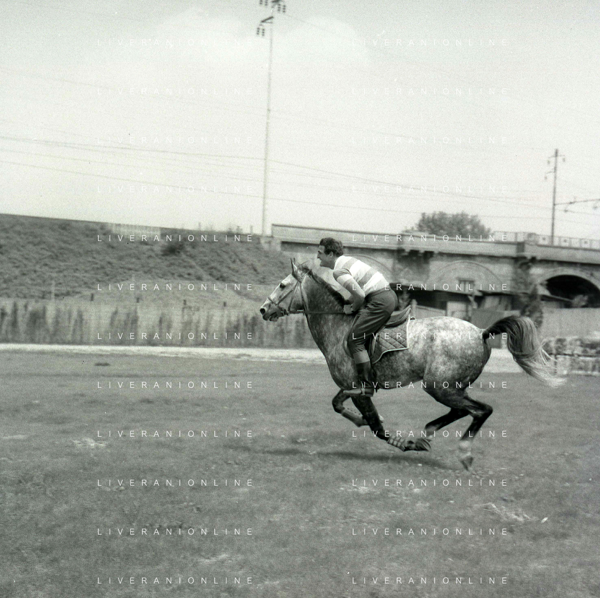 NEG-RETROSPETTIVA GINO SANTERCOLE ATTORE E CANTANTE NELLA FOTO GINO SANTERCOLE AL MANEGGIO A MILANO NELL'ANNO 1967 AG ALDO LIVERANI SAS