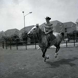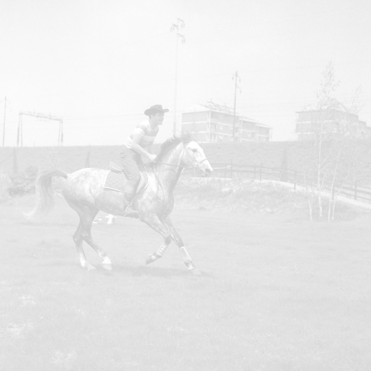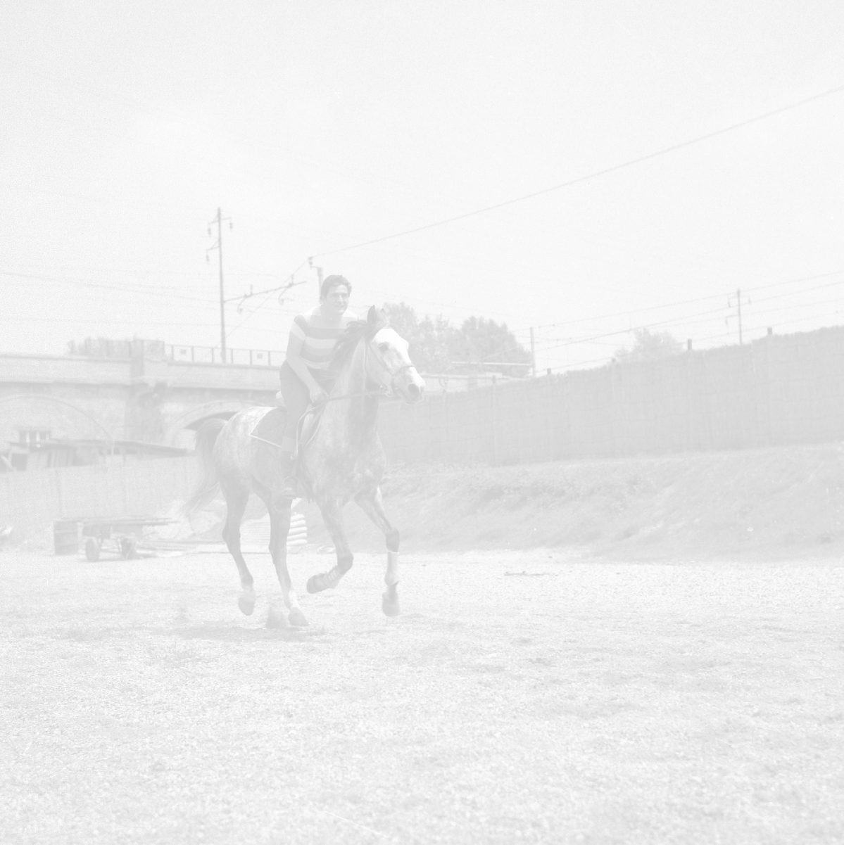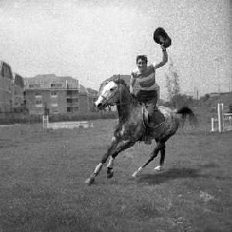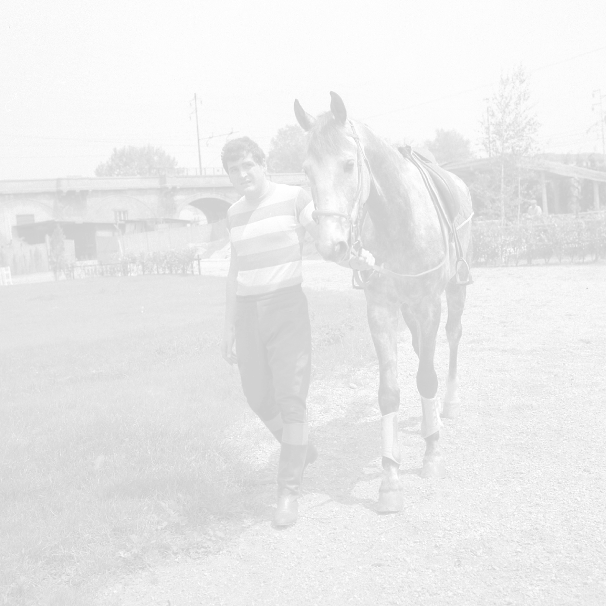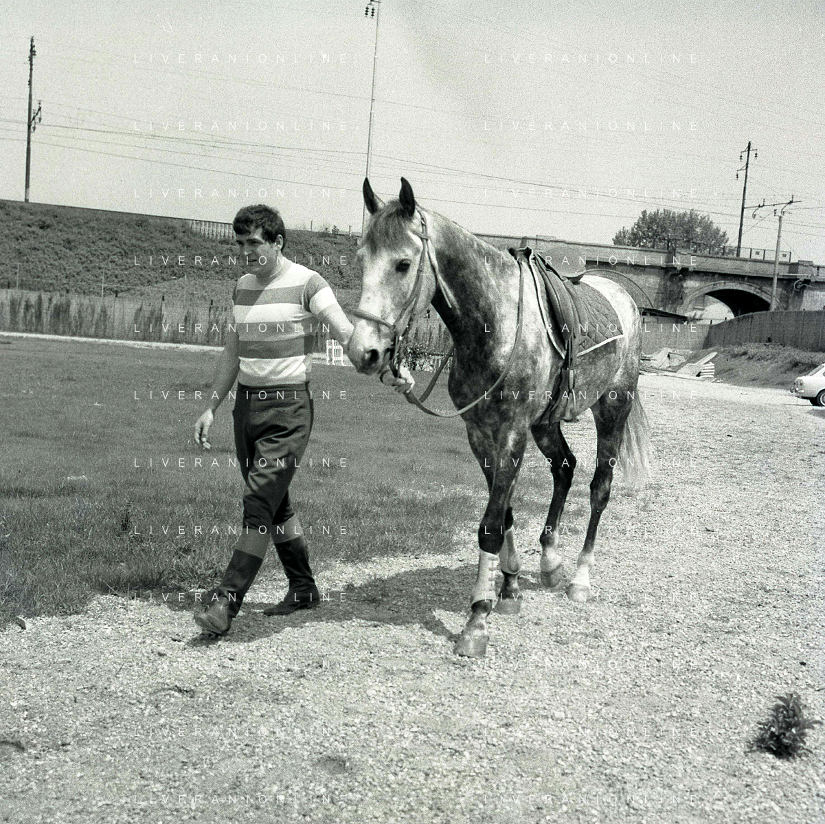 NEG-RETROSPETTIVA GINO SANTERCOLE ATTORE E CANTANTE NELLA FOTO GINO SANTERCOLE AL MANEGGIO A MILANO NELL'ANNO 1967 AG ALDO LIVERANI SAS