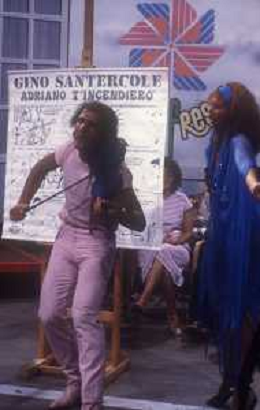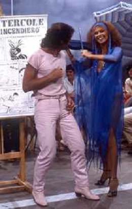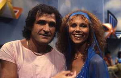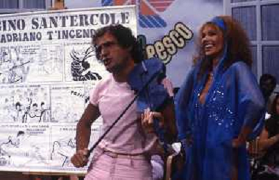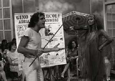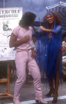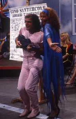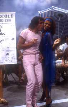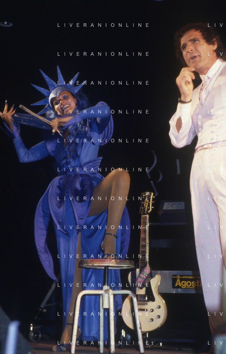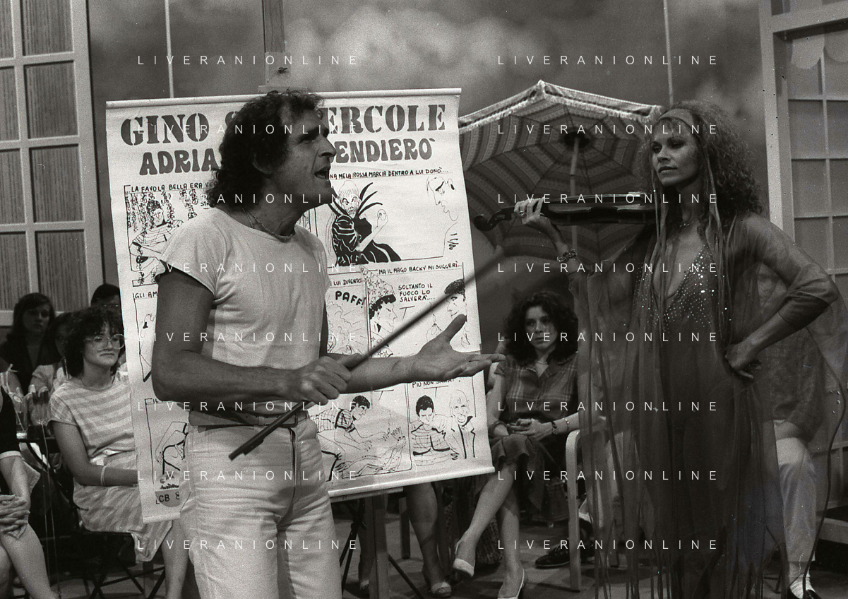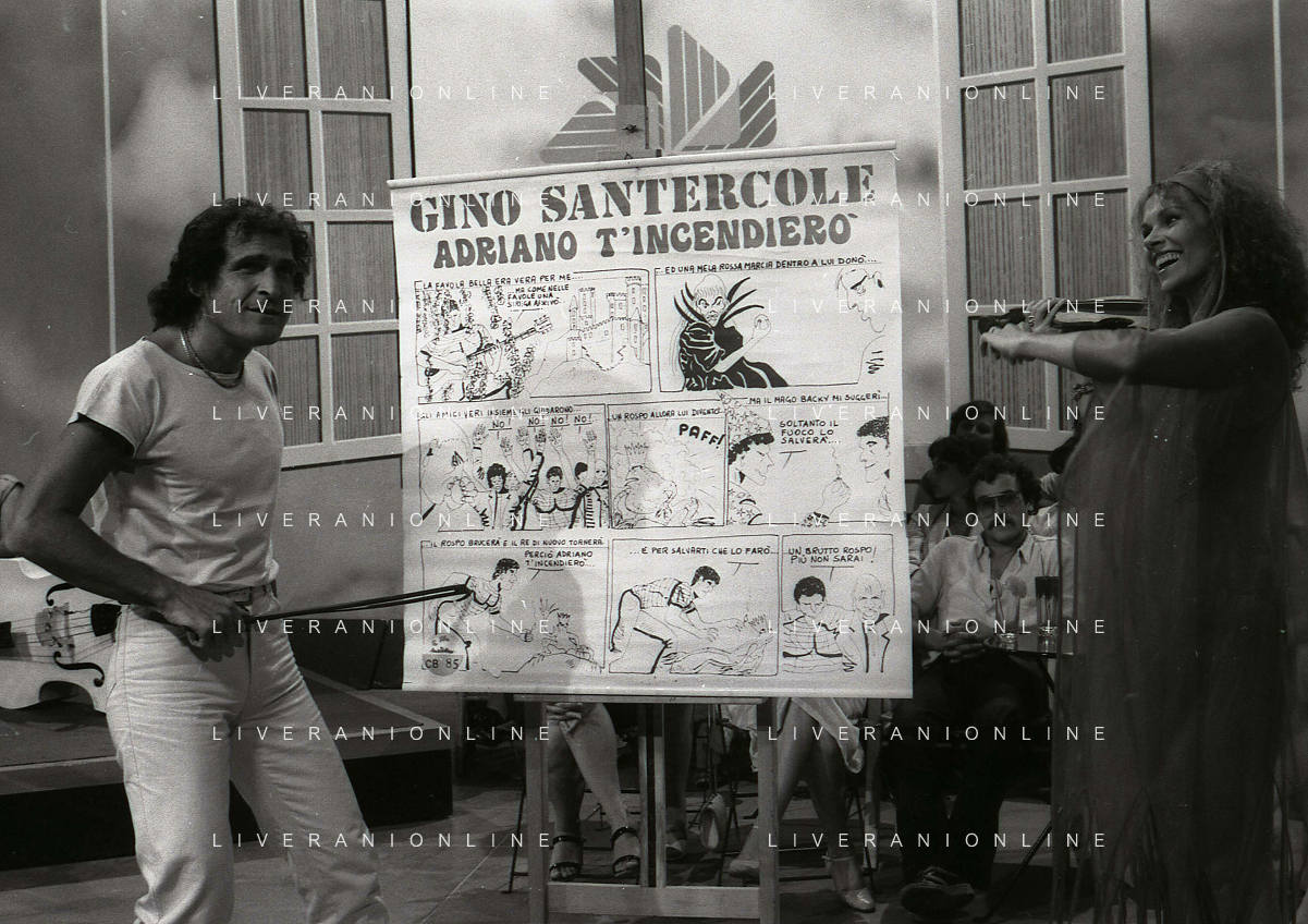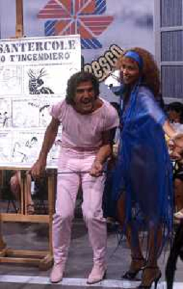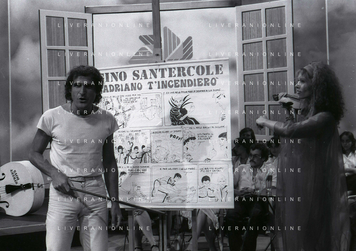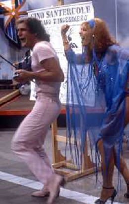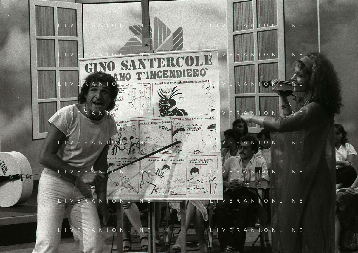 DIAP-RETROSPETTIVA GINO SANTERCOLE CANTANTE E ATTORE NELLA FOTO GINO SANTERCOLE CON MELU' VALENTE NELL'ANNO 1981 NELLA TRASMISSIONE TELEVISIVA FRESCO FRESCO AG ALDO LIVERANI SAS