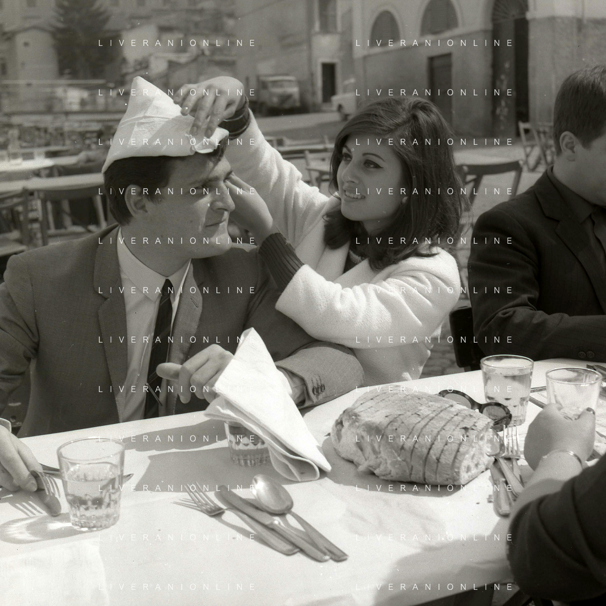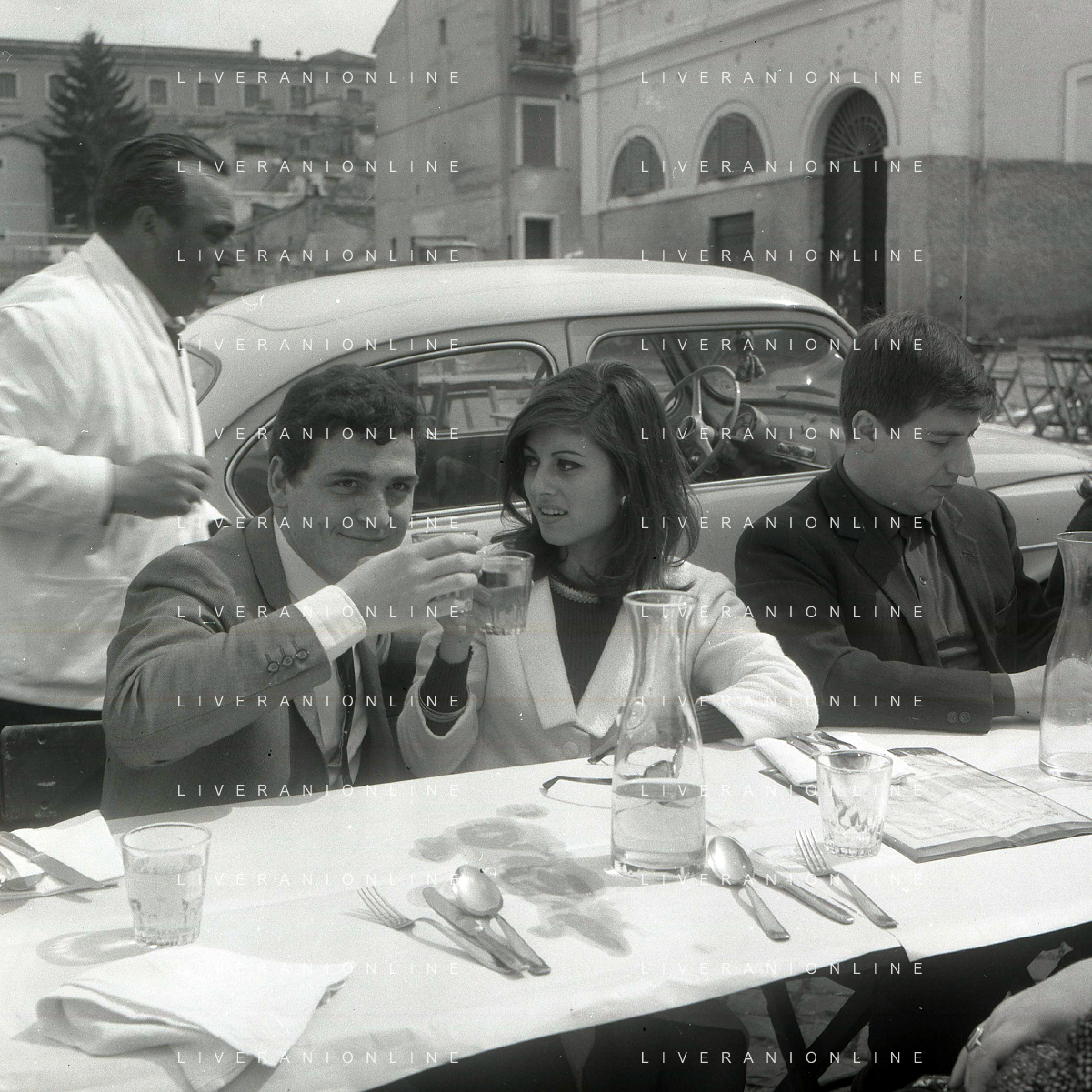 NEG-RETROSPETTIVA GINO SANTERCOLE ATTORE E CANTANTE NELLA FOTO GINO SANTERCOLE CON LA FIDANZATA ANNA MORONI A FRASCATI NELL'ANNO 1965 AG ALDO LIVERANI SAS