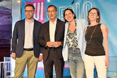 TVRG Festa Unita' Milano nella foto da SX Vinicio Peluffo, Giuseppe Sala, Elly Schlein e Silvia Roggiani Milano 08-09-2023 La Festa dell'Unita' presso l'area dell'ex macello di viale Molise foto Roberto Garavaglia/ag. Aldo Liverani sas/AGENZIA ALDO LIVERANI SAS