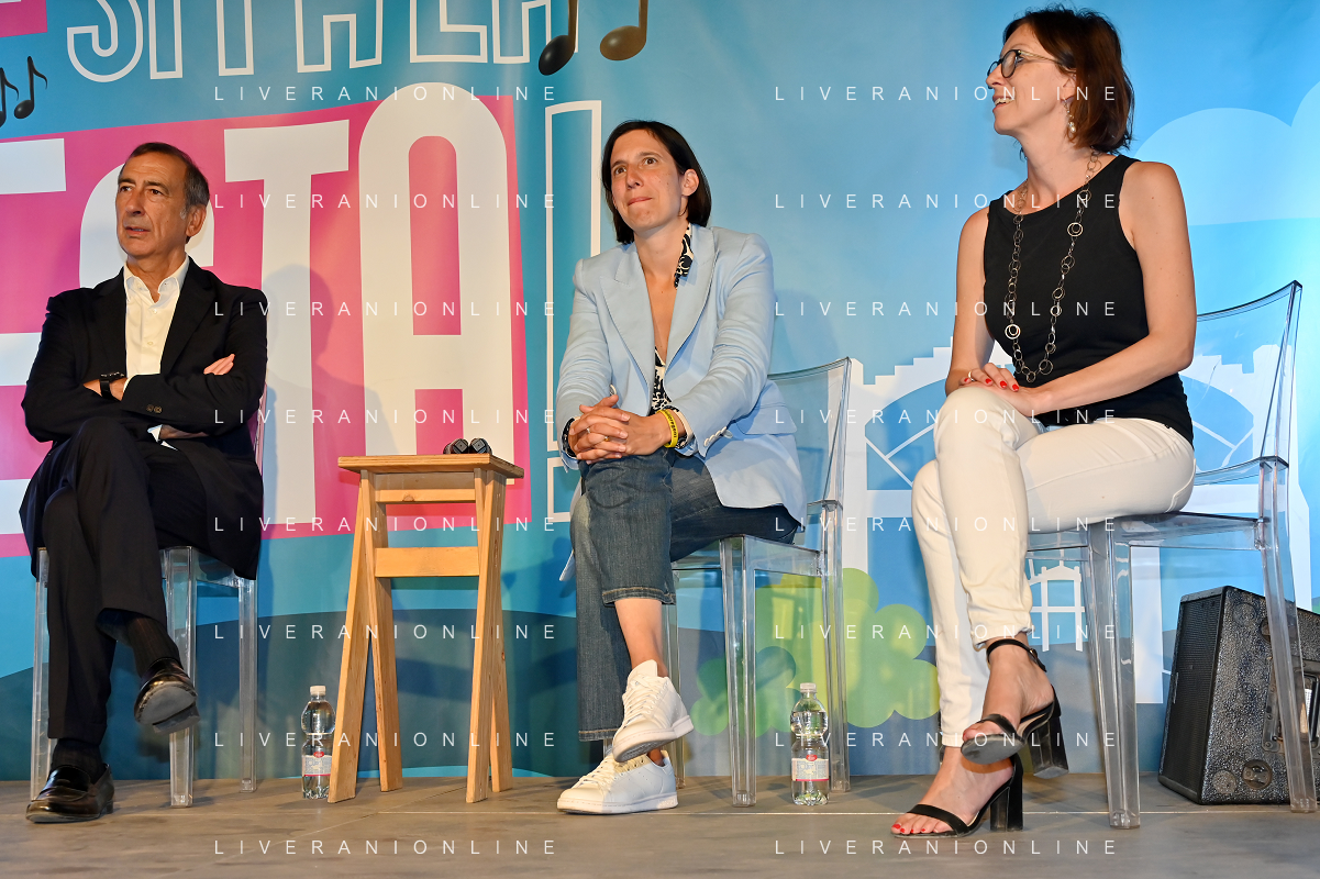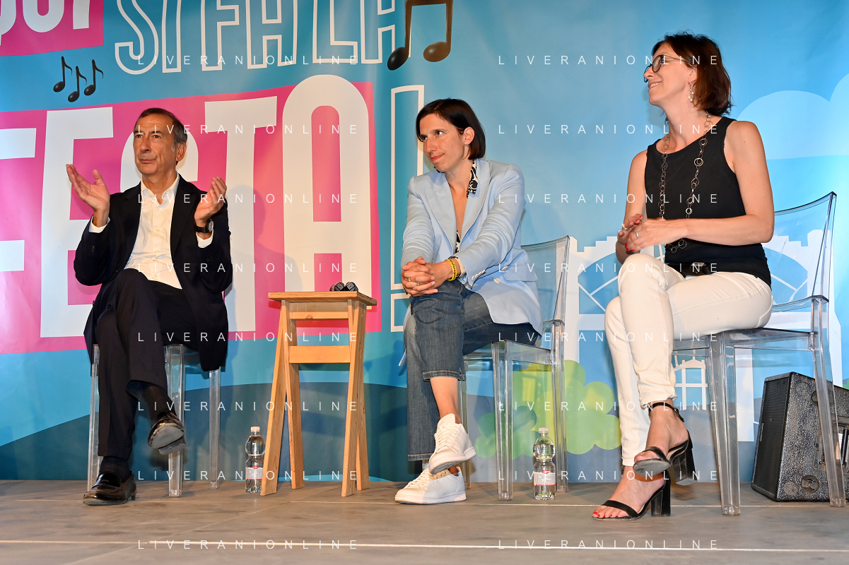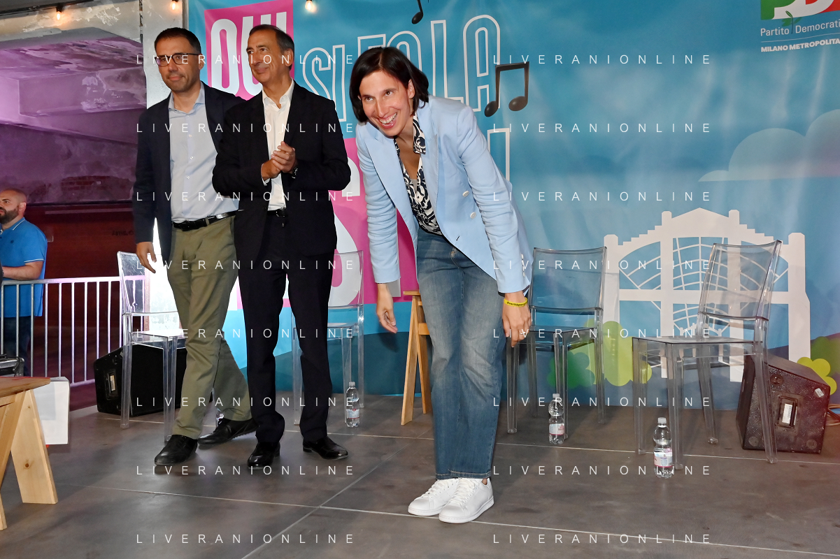 TVRG Festa Unita' Milano nella foto da SX Giuseppe Sala, Elly Schlein e Silvia Roggiani Milano 08-09-2023 La Festa dell'Unita' presso l'area dell'ex macello di viale Molise foto Roberto Garavaglia/ag. Aldo Liverani sas/AGENZIA ALDO LIVERANI SAS