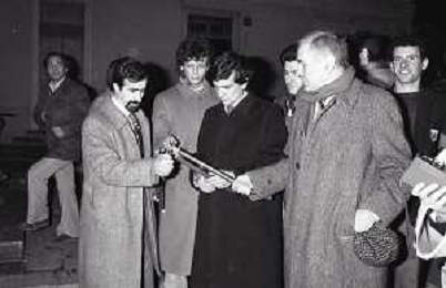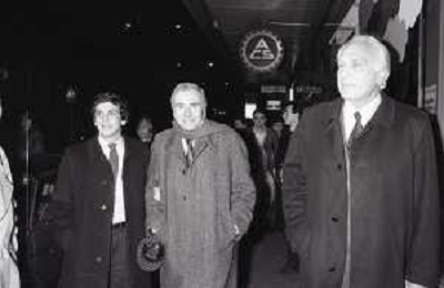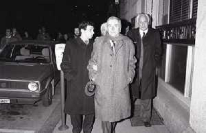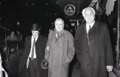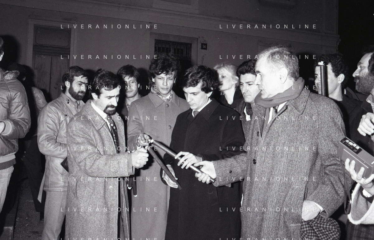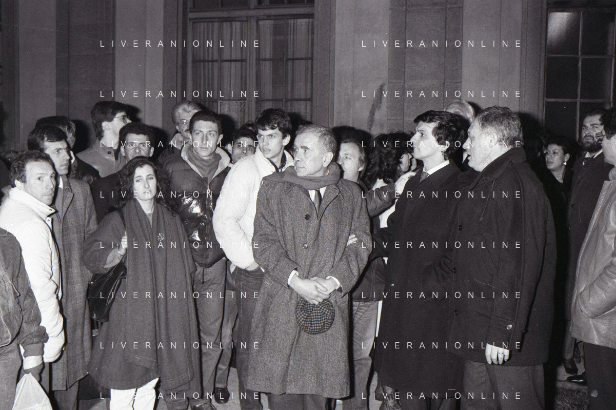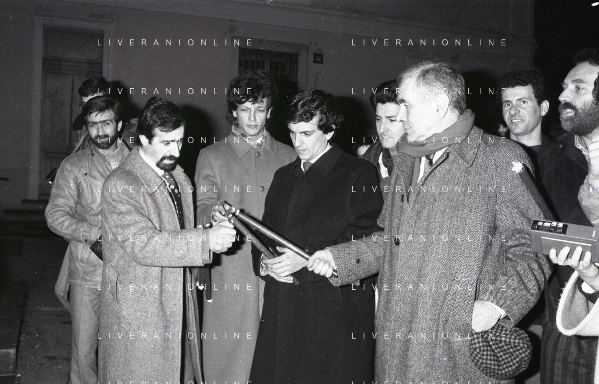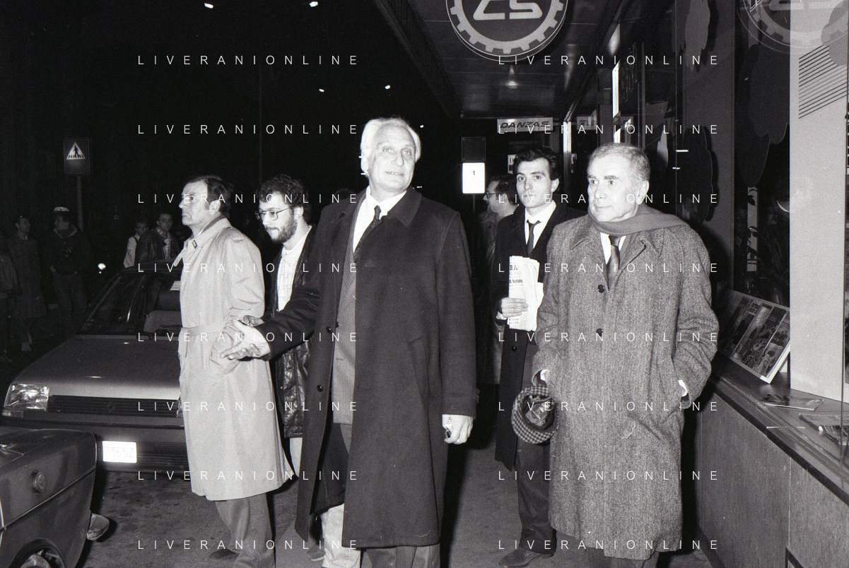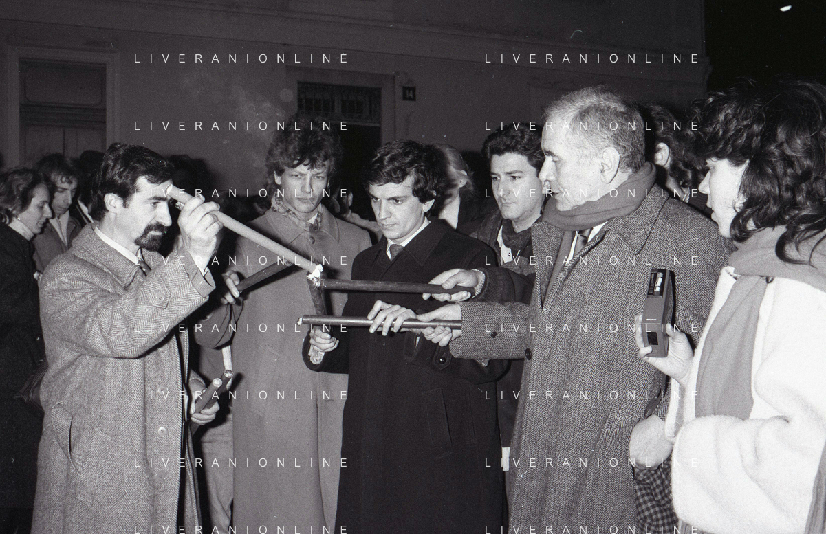 NEG-RETROSPETTIVA ENZO TORTORA PRESENTATORE TELEVISIVO-POLITICO E GIORNALISTA NELLA FOTO ENZO TORTORA CON GIOVANNI NEGRI E MARCO PANNELLA A UNA FIACCOLATA A MILANO NELL'ANNO 1985 AG ALDO LIVERANI SAS
