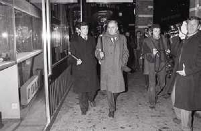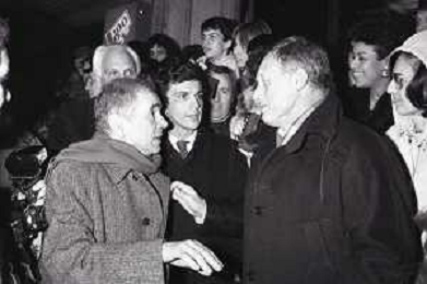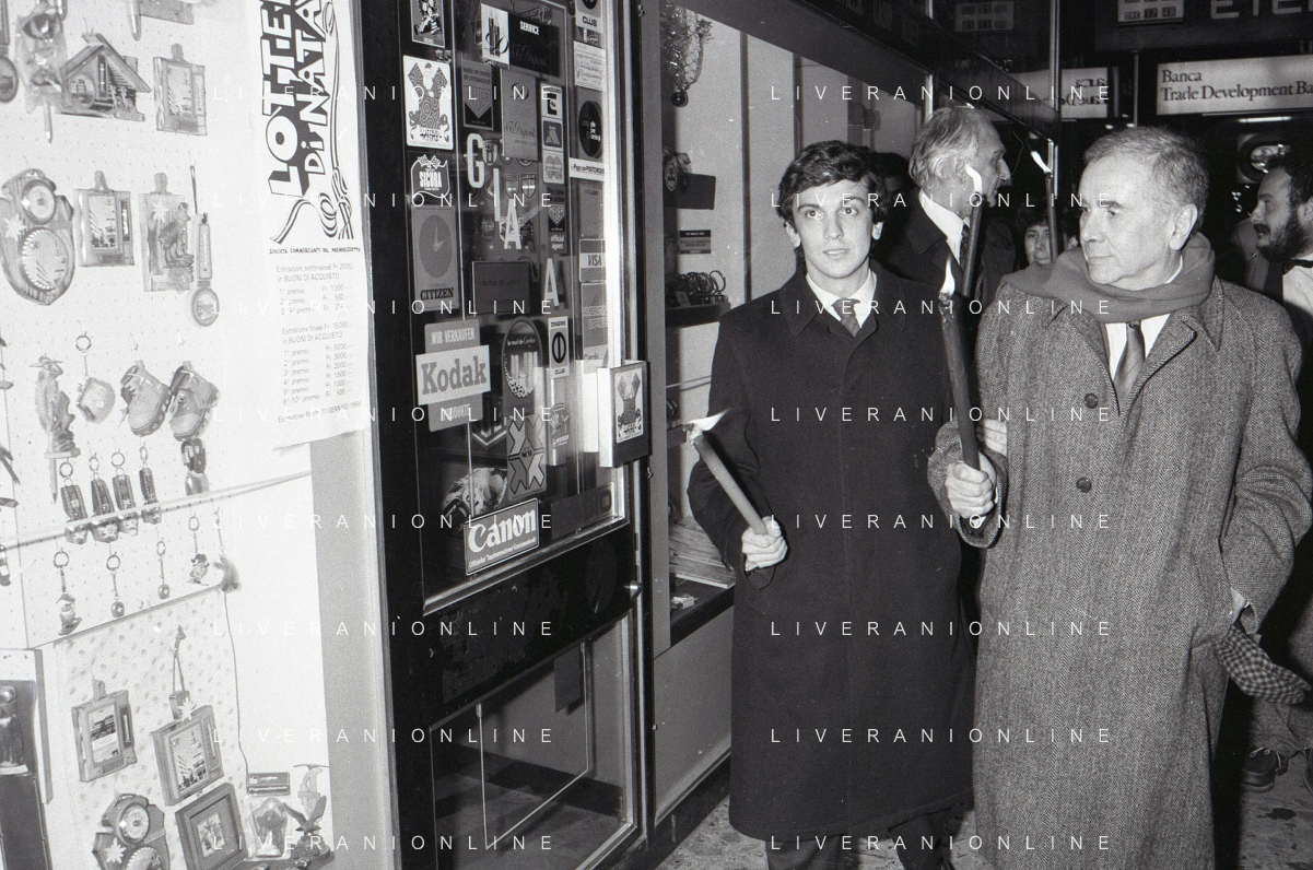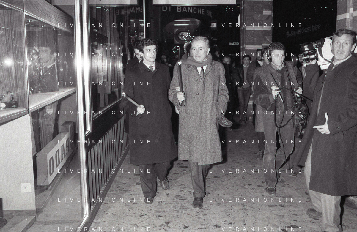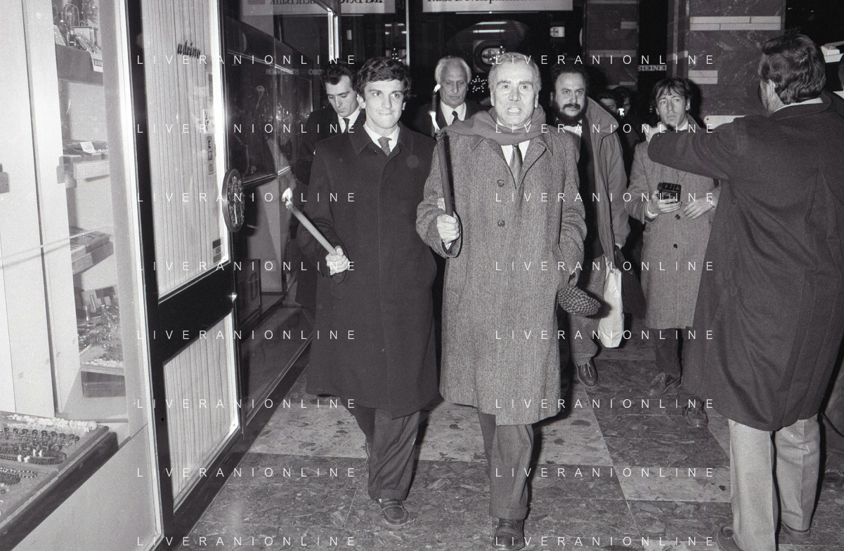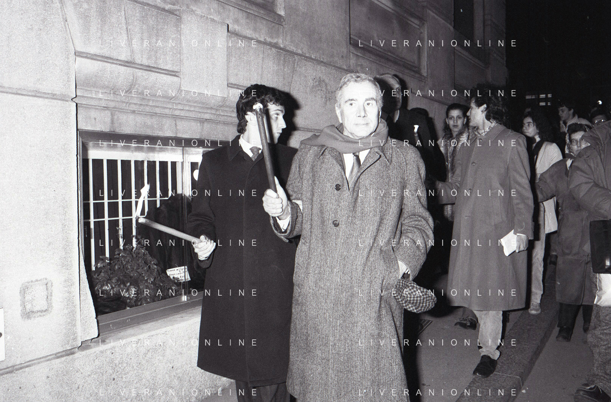 NEG-RETROSPETTIVA ENZO TORTORA PRESENTATORE TELEVISIVO-POLITICO E GIORNALISTA NELLA FOTO ENZO TORTORA CON GIOVANNI NEGRI SEGRETARIO RADICALI A UNA FIACCOLATA A MILANO NELL'ANNO 1985 AG ALDO LIVERANI SAS