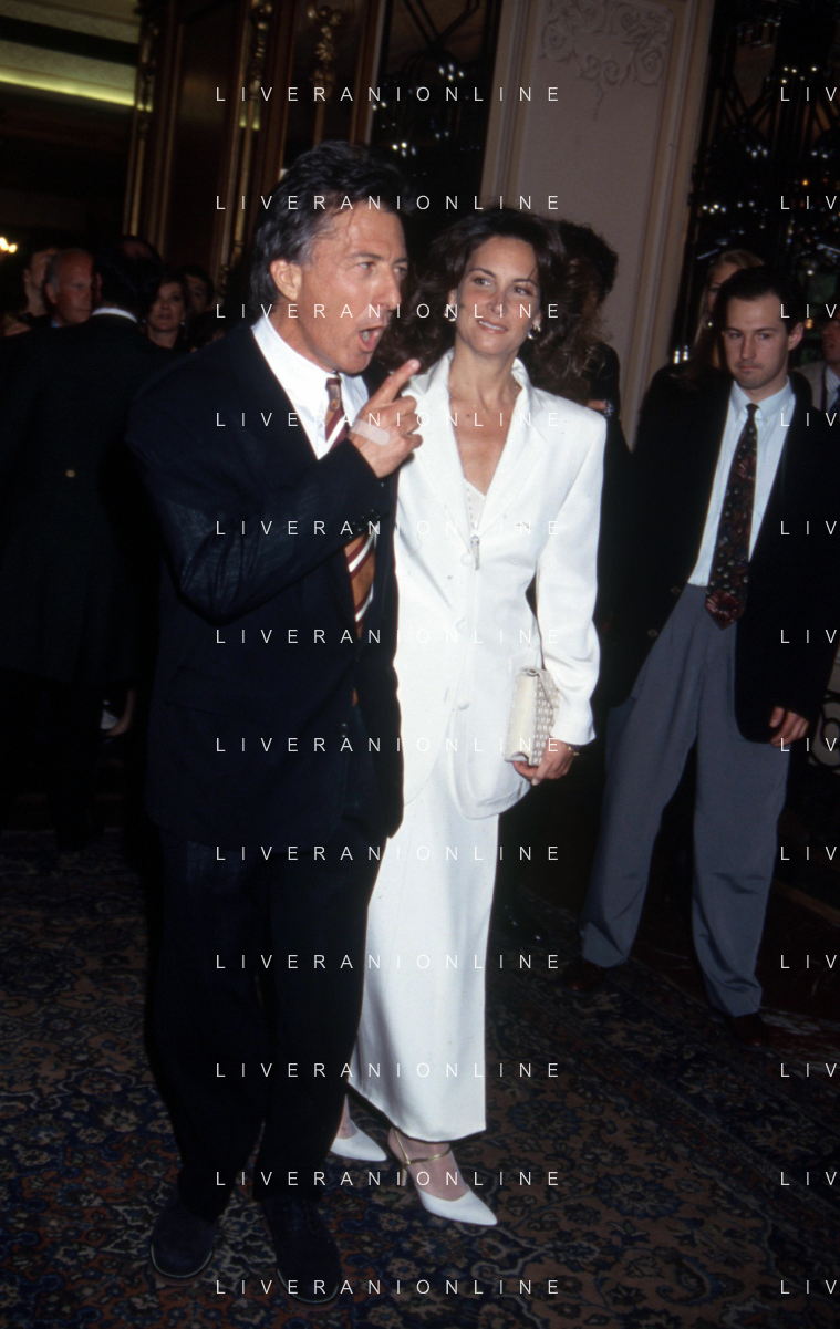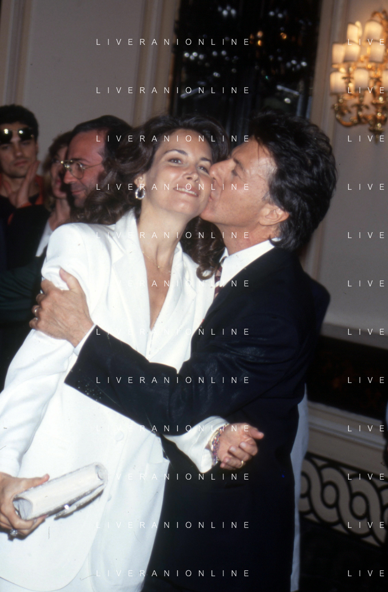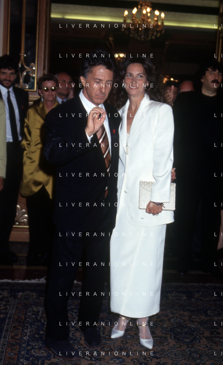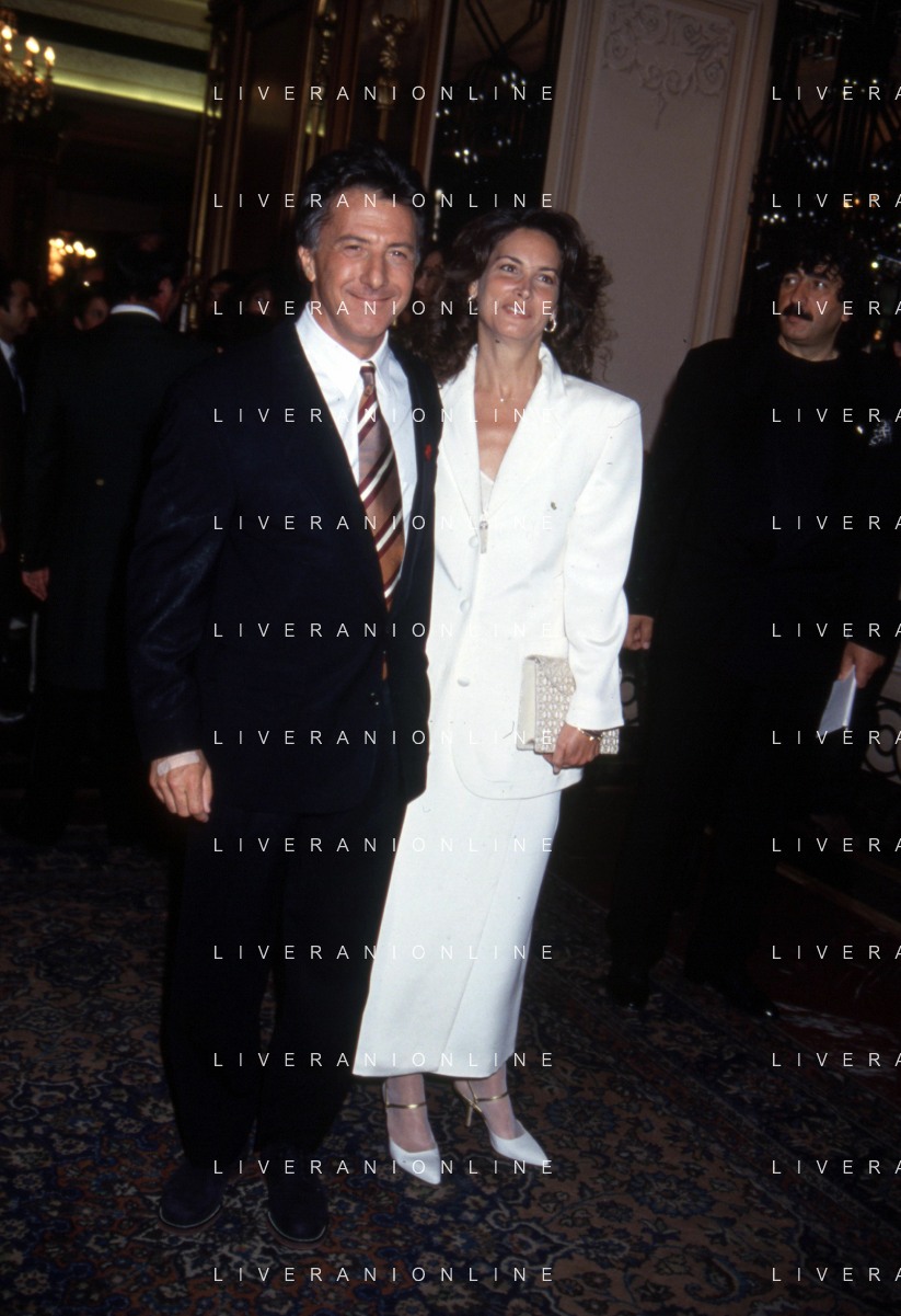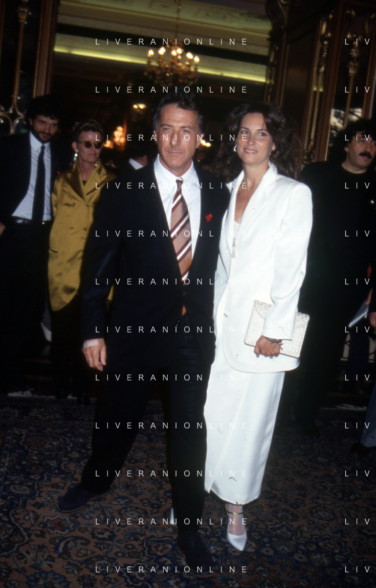 Dia- DUSTIN HOFFMAN ATTORE - RETROSPETTIVA NELLA FOTO A MILANO NELL'ANNO 1993 PER PARTECIPARE AI TELEGATTI CON LA MOGLIE LISA GOTTSEGEN AG ALDO LIVERANI SAS