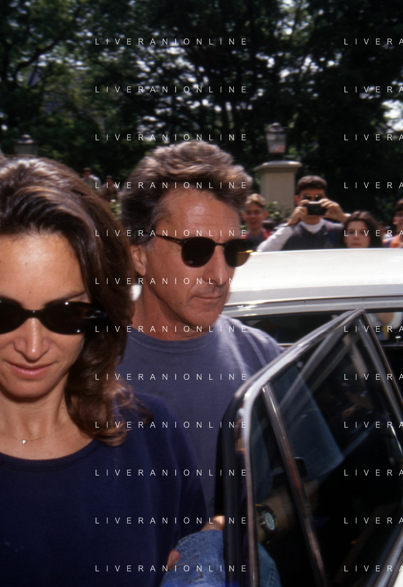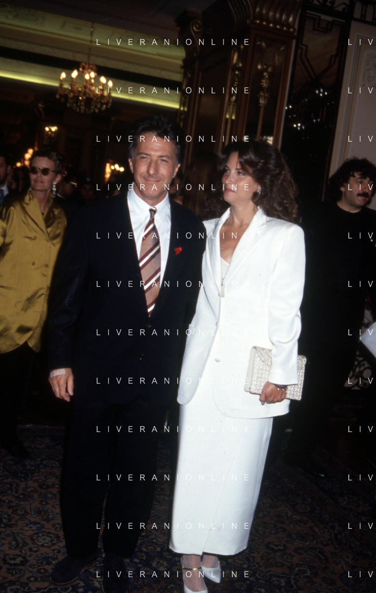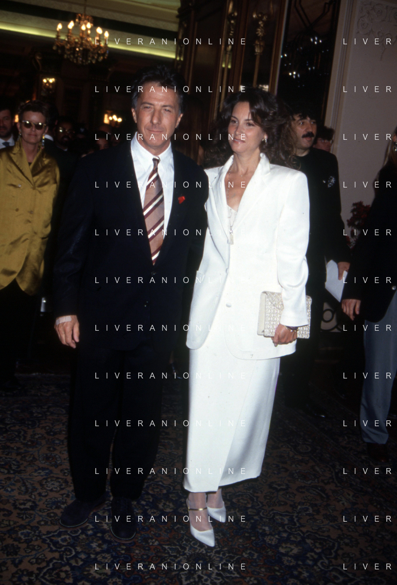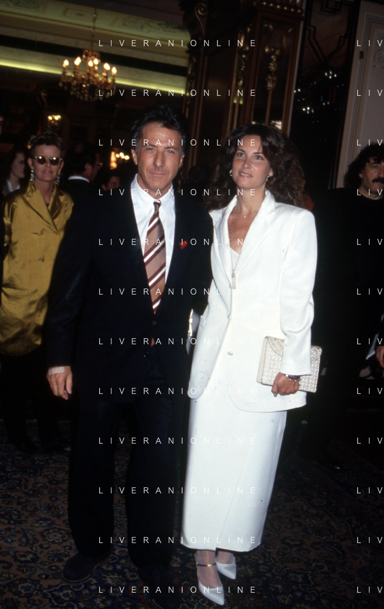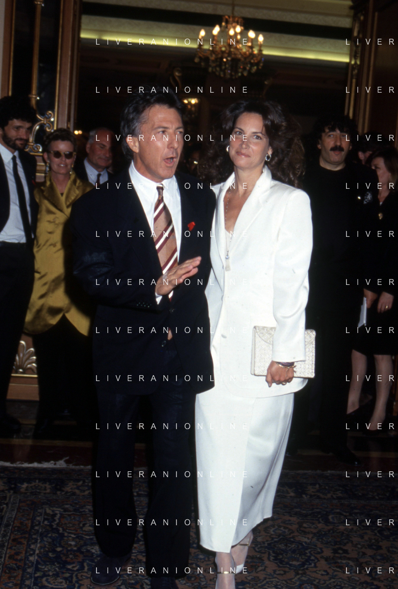 Dia- DUSTIN HOFFMAN ATTORE - RETROSPETTIVA NELLA FOTO A MILANO NELL'ANNO 1993 PER PARTECIPARE AI TELEGATTI CON LA MOGLIE LISA GOTTSEGEN AG ALDO LIVERANI SAS
