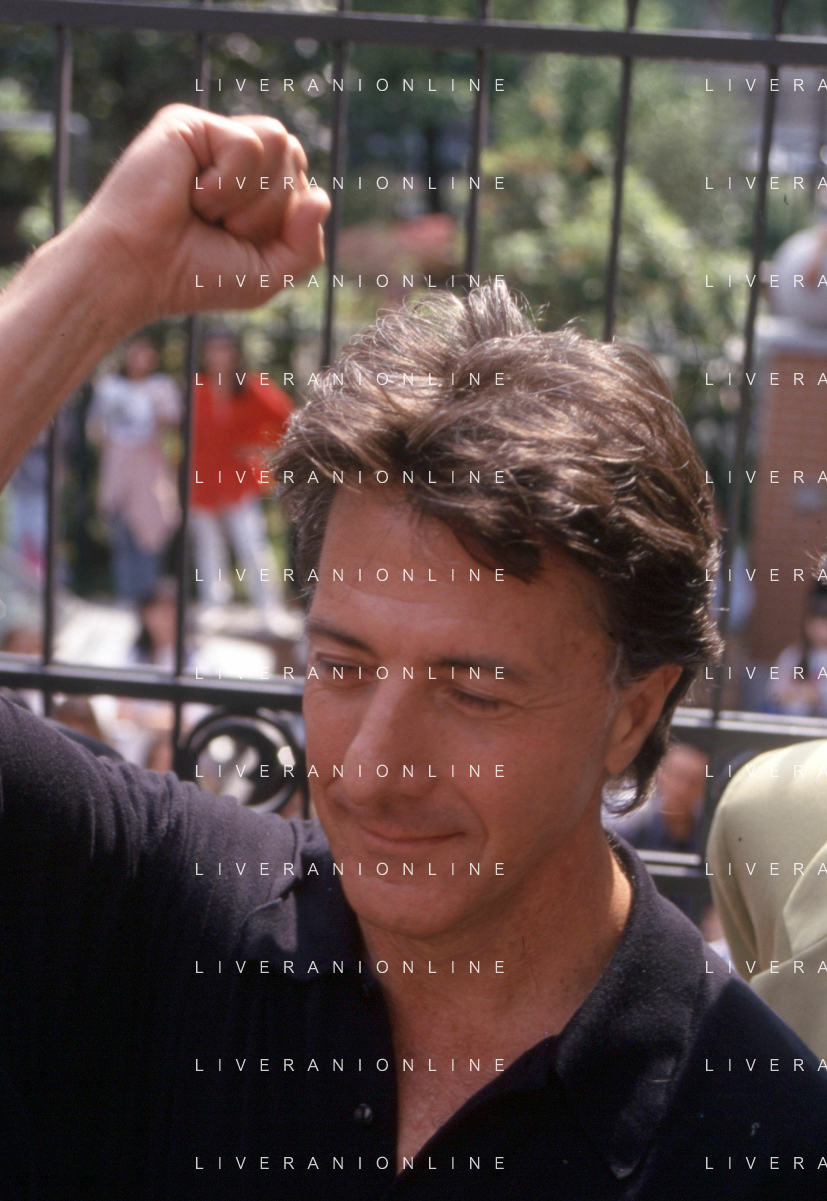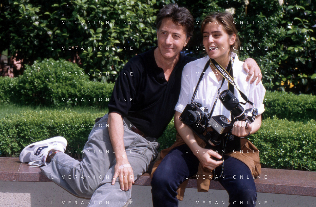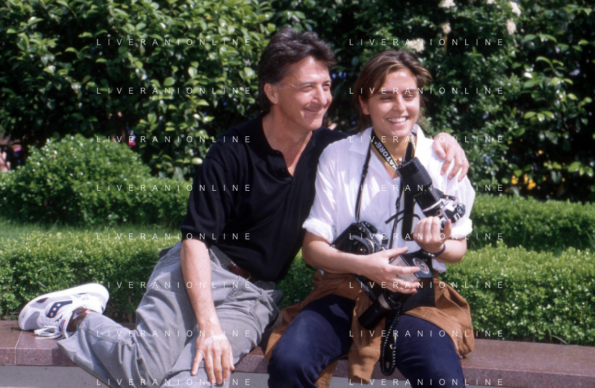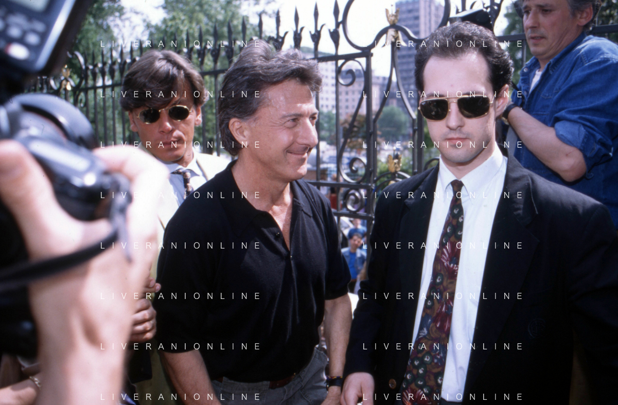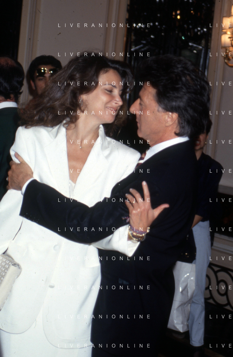 Dia- DUSTIN HOFFMAN ATTORE - RETROSPETTIVA NELLA FOTO A MILANO NELL'ANNO 1993 PER PARTECIPARE AI TELEGATTI CON LA MOGLIE LISA GOTTSEGEN AG ALDO LIVERANI SAS