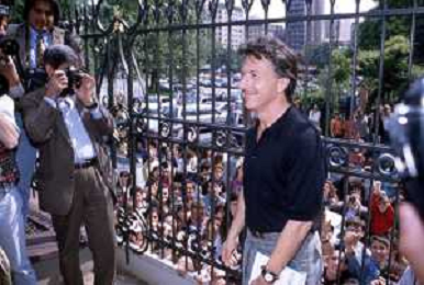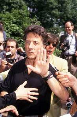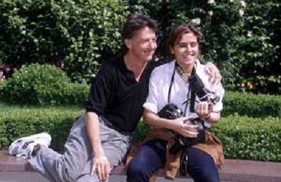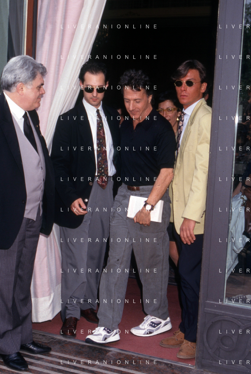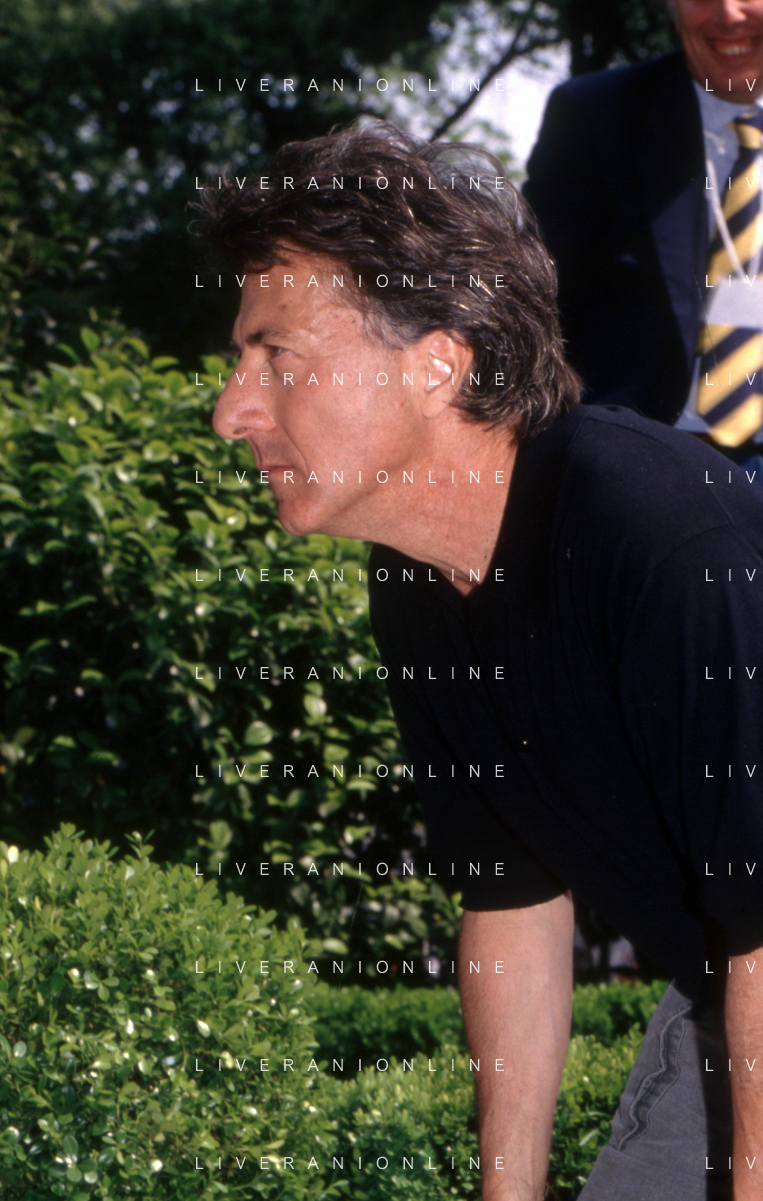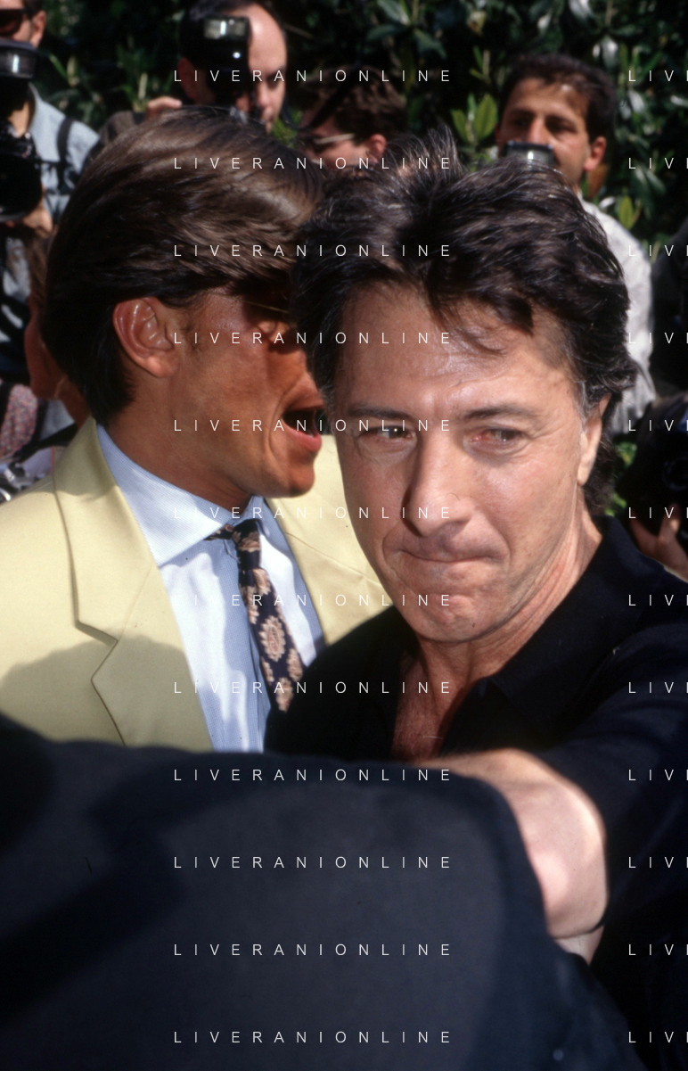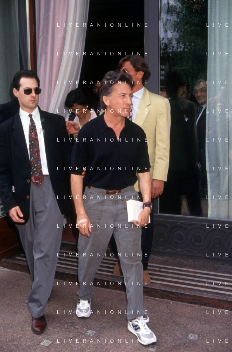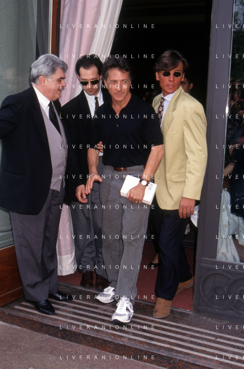 Dia- DUSTIN HOFFMAN ATTORE - RETROSPETTIVA NELLA FOTO A MILANO NELL'ANNO 1993 PER PARTECIPARE AI TELEGATTI CON LA MOGLIE LISA GOTTSEGEN AG ALDO LIVERANI SAS