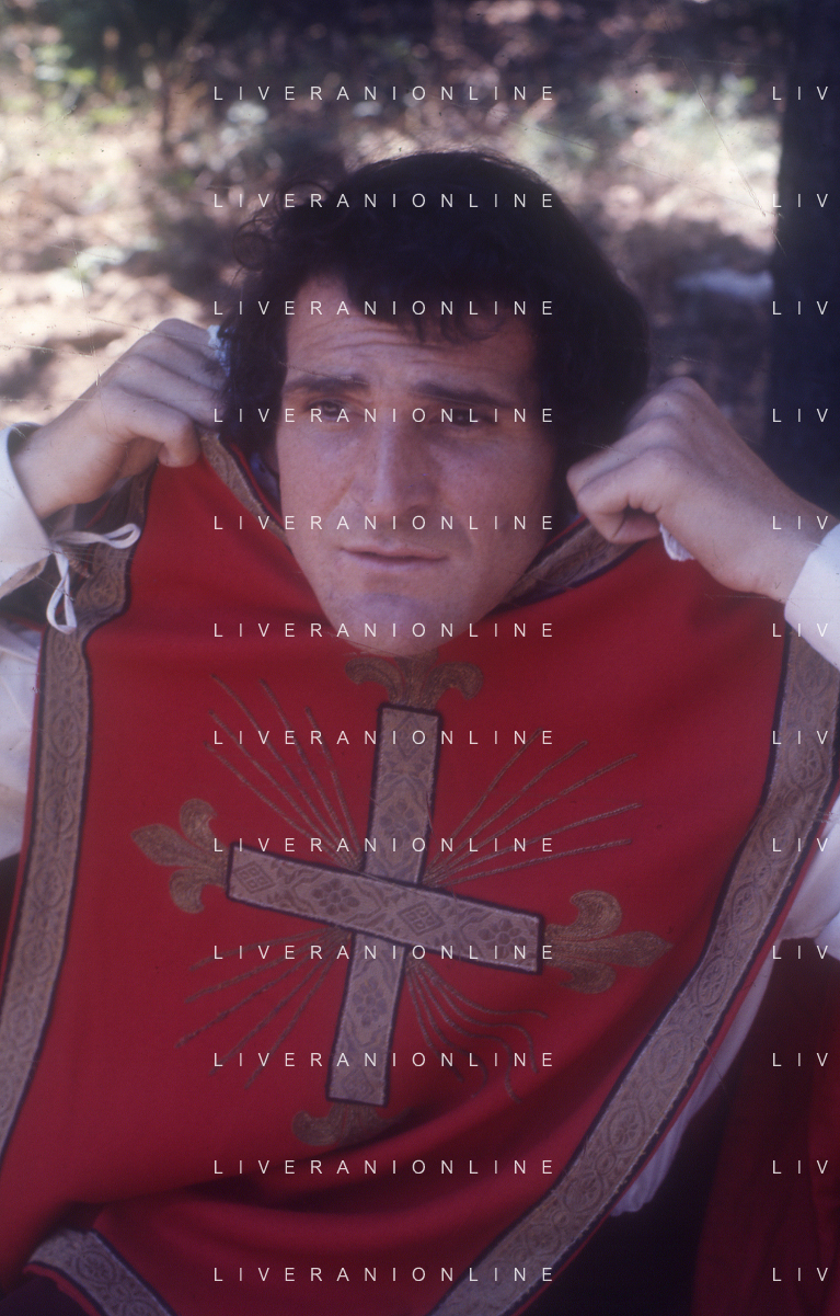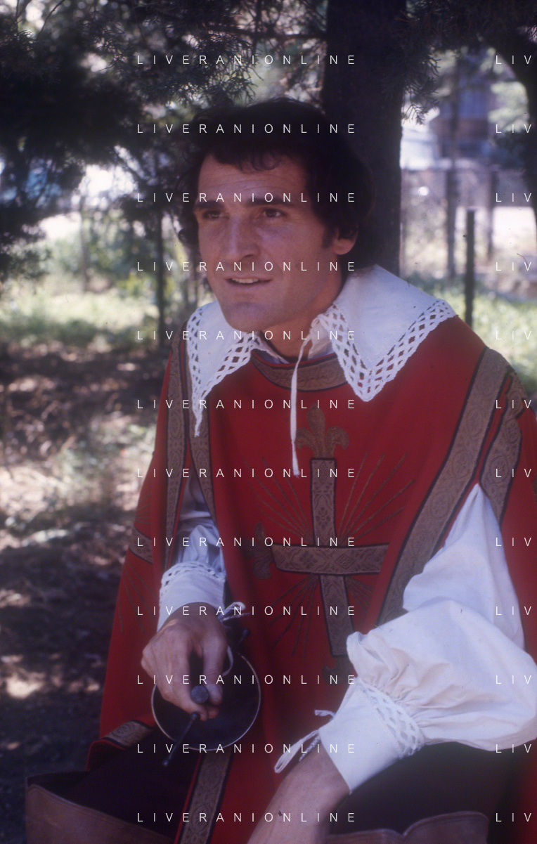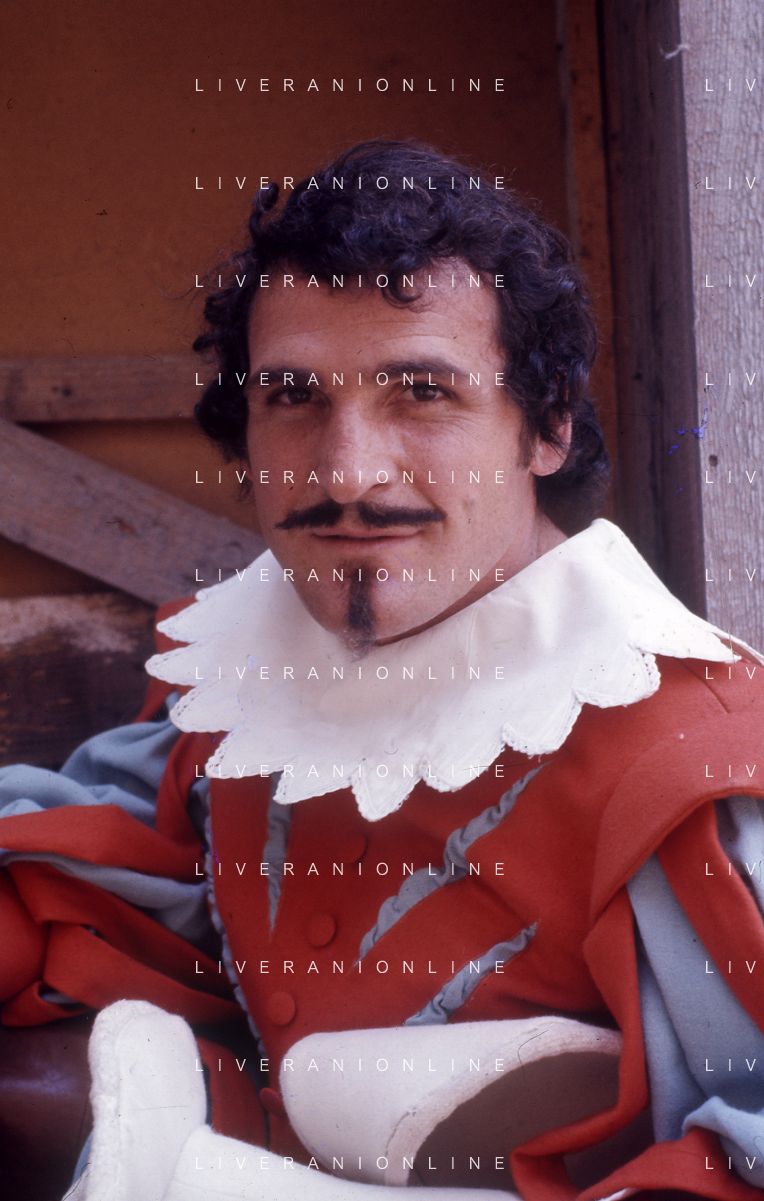 DIAP-RETROSPETTIVA GINO SANTERCOLE CANTANTE E ATTORE NELLA FOTO GINO SANTERCOLE SUL SET DEL FILM LI CHIAMAVANO I TRE MOSCHETTIERI ........ INVECE ERANO QUATTRO NELL'ANNO 1973 AG ALDO LIVERANI SAS