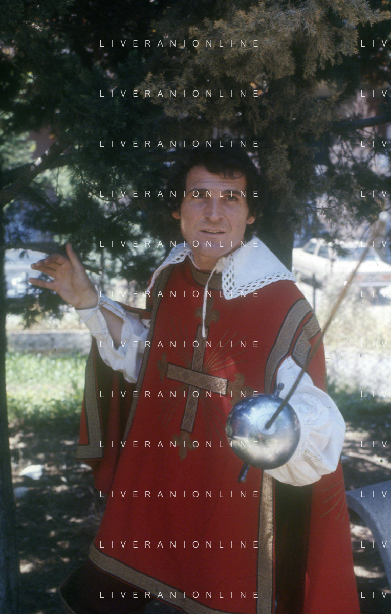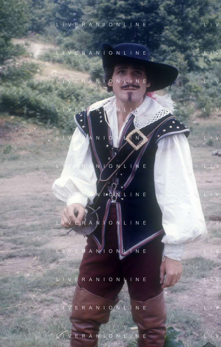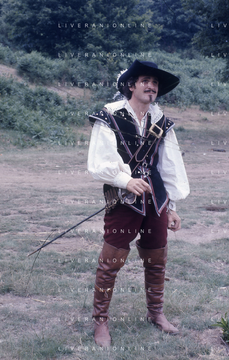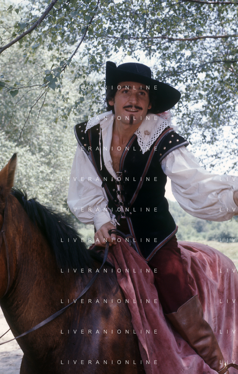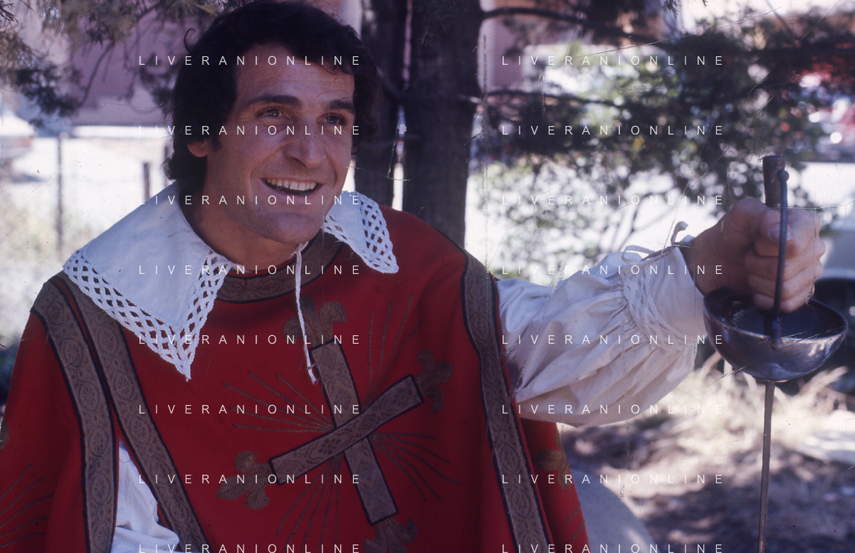DIAP-RETROSPETTIVA GINO SANTERCOLE CANTANTE E ATTORE NELLA FOTO GINO SANTERCOLE SUL SET DEL FILM LI TRE MOSCHIETTIERI.............. INVECE ERANO QUATTRO NELL'ANNO 1973 AG ALDO LIVERANI SAS