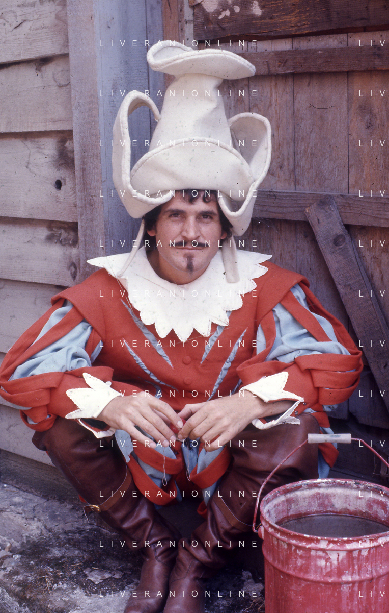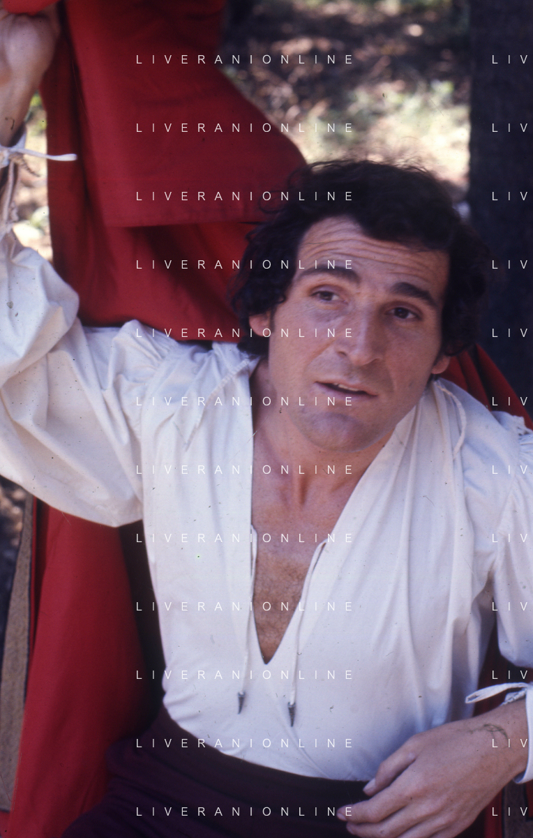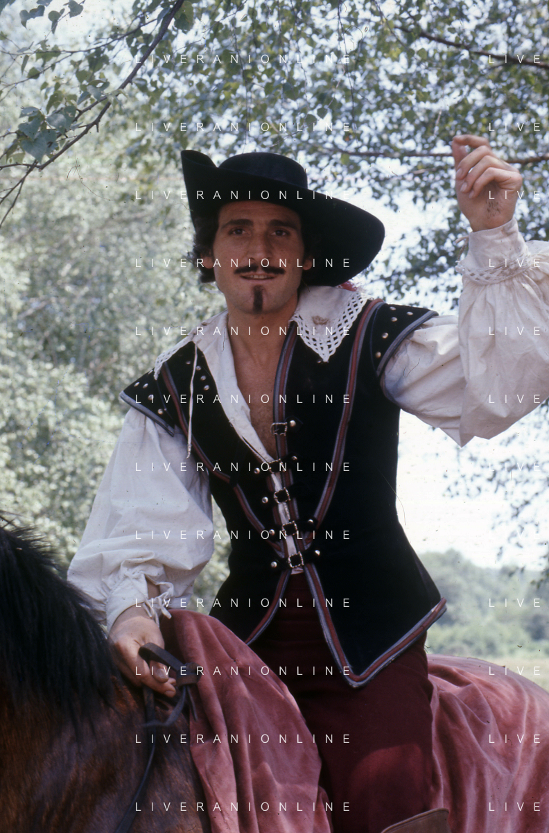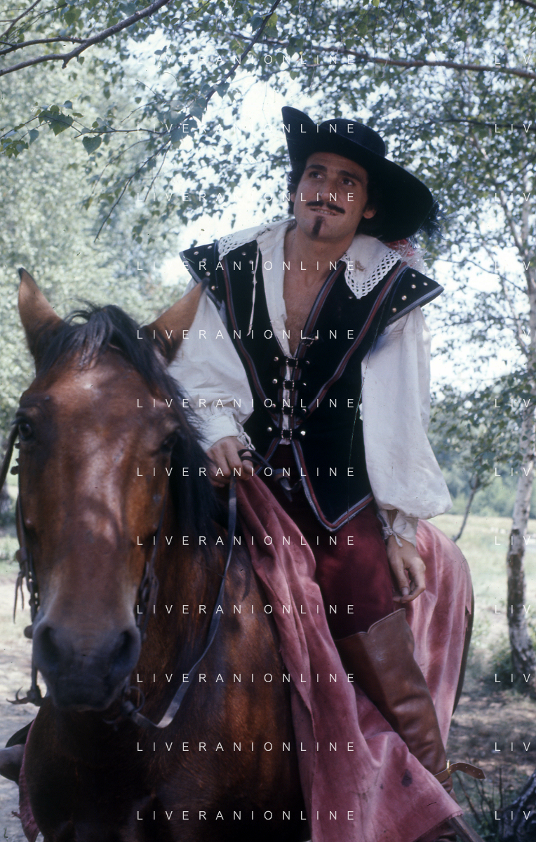 DIAP-RETROSPETTIVA GINO SANTERCOLE CANTANTE E ATTORE NELLA FOTO GINO SANTERCOLE SUL SET DEL FILM LI TRE MOSCHIETTIERI.............. INVECE ERANO QUATTRO NELL'ANNO 1973 AG ALDO LIVERANI SAS