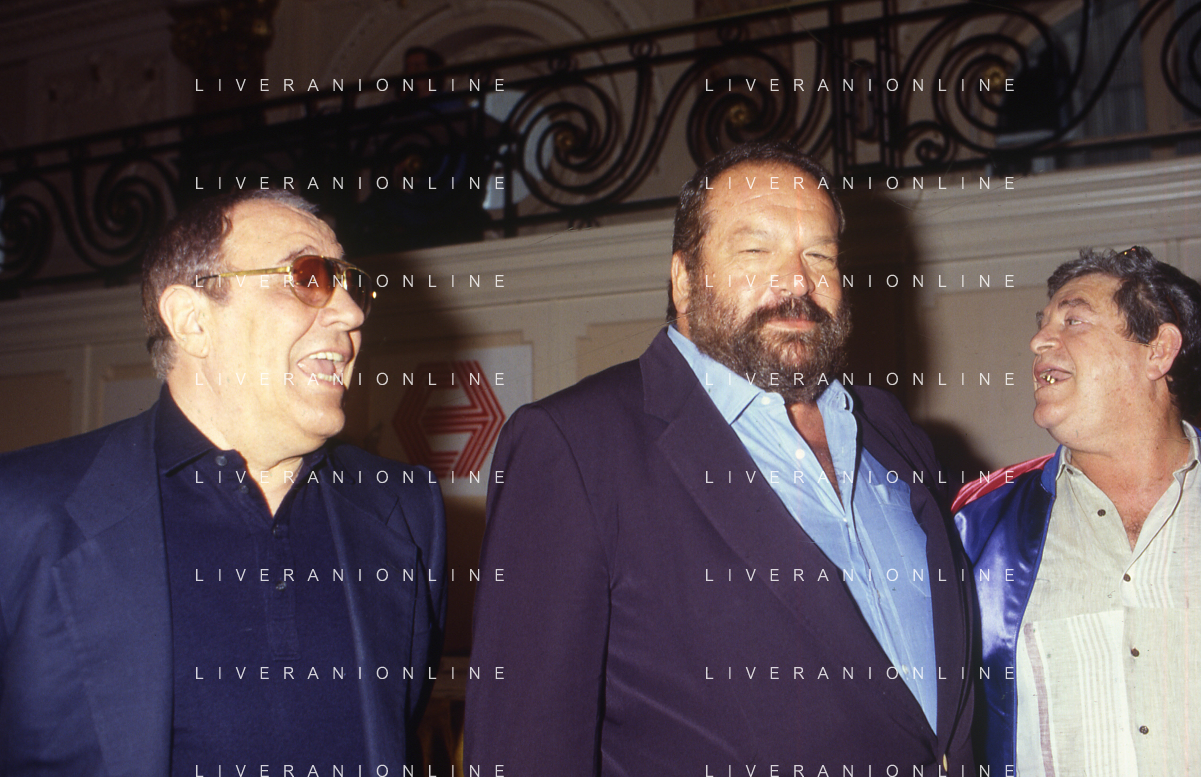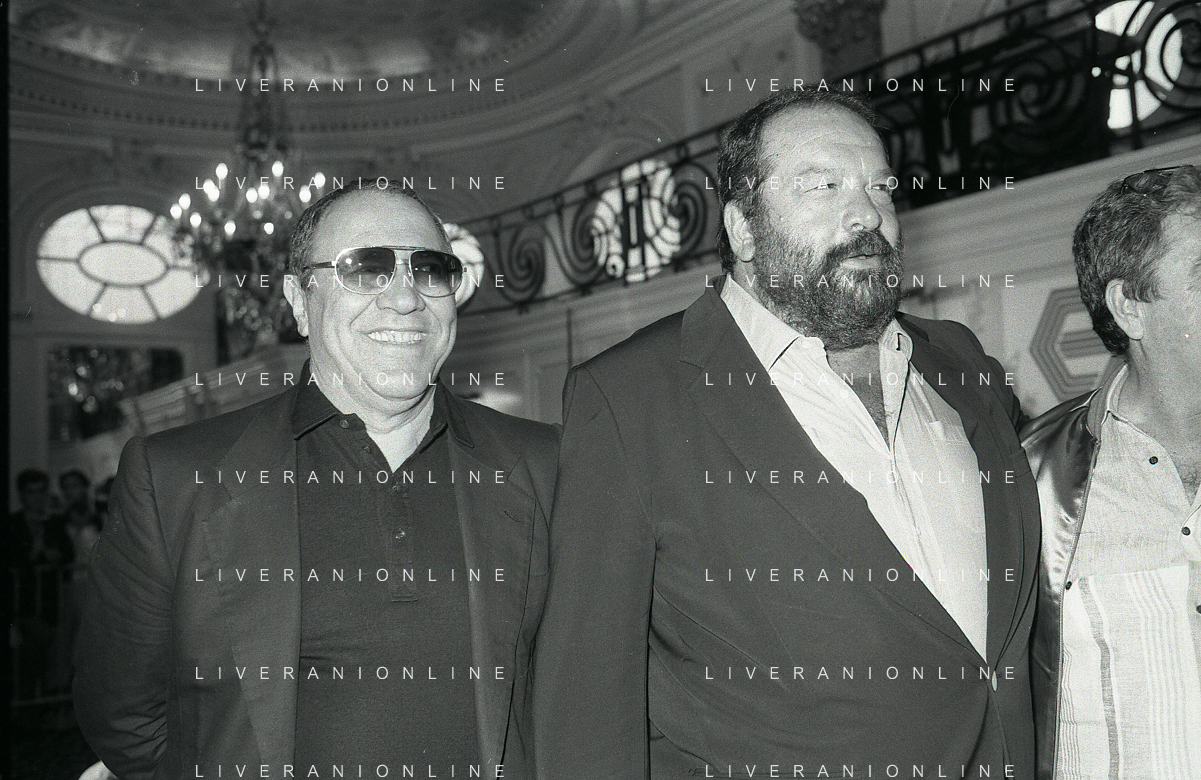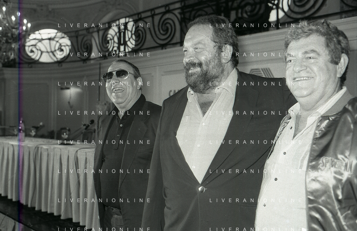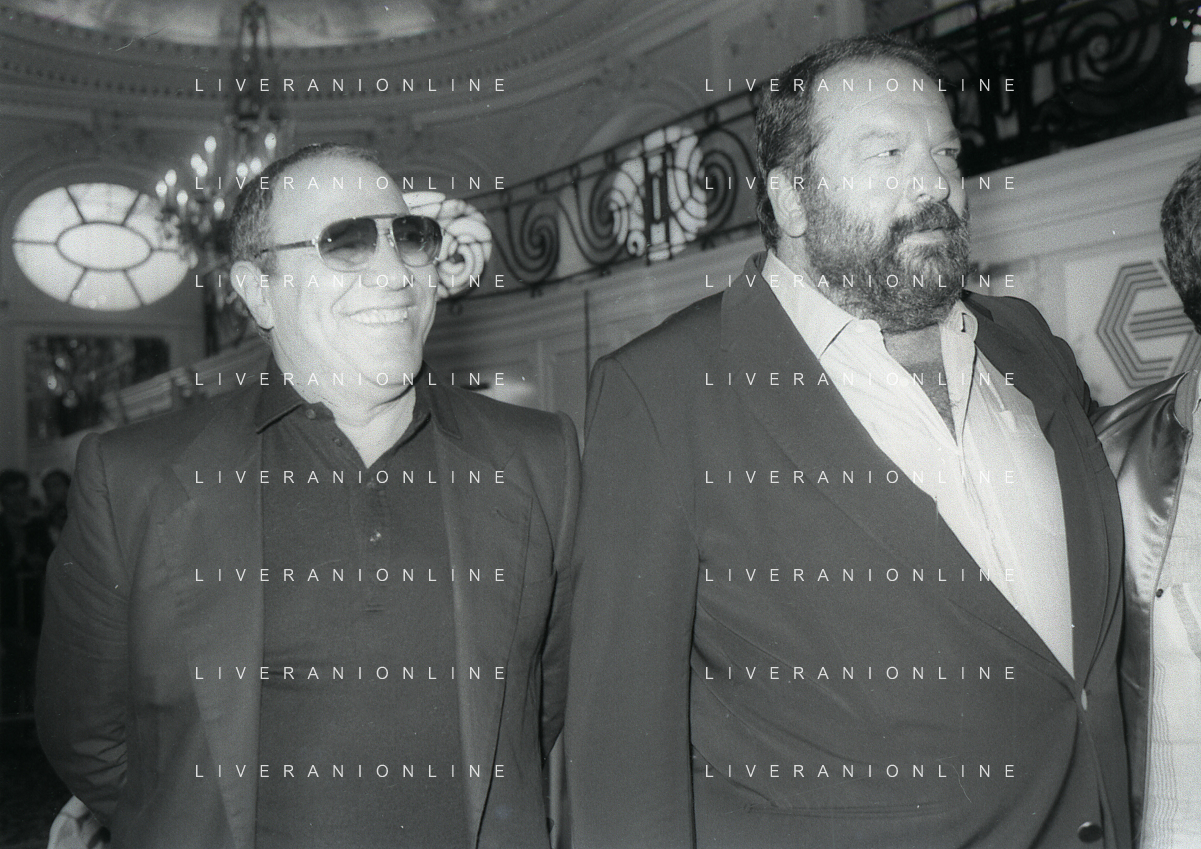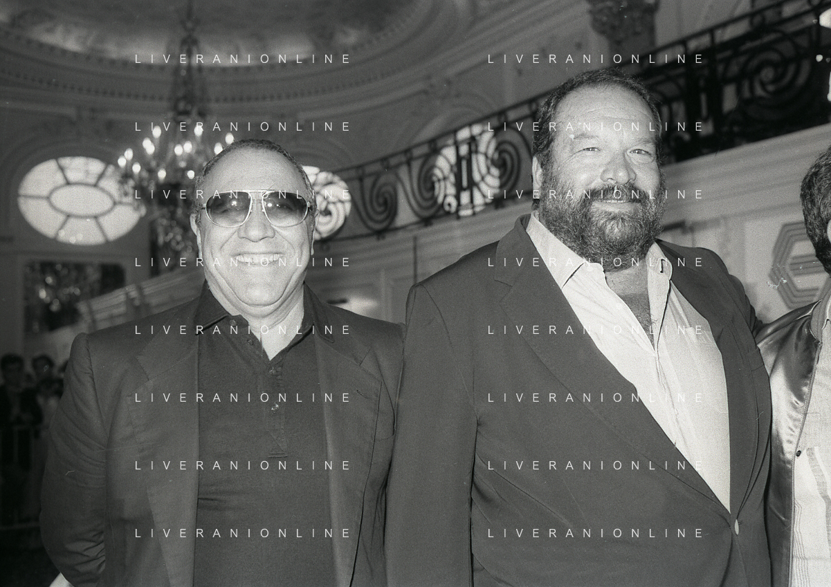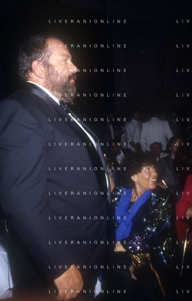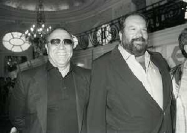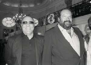 DIAP-RETROSPETTIVA BUD SPENCER PSEUDONIMO DI CARLO PEDERSOLI ATTORE NELLA FOTO BUD SPENCER CON IL REGISTA ELIO CORBUCCI NELL'ANNO 1985 AG ALDO LIVERANI SAS
