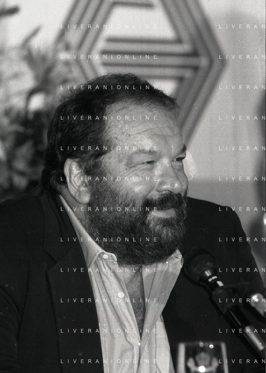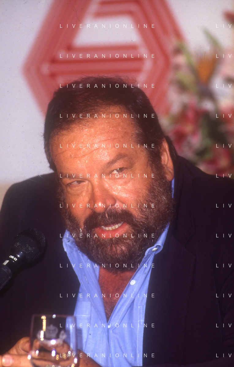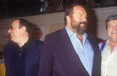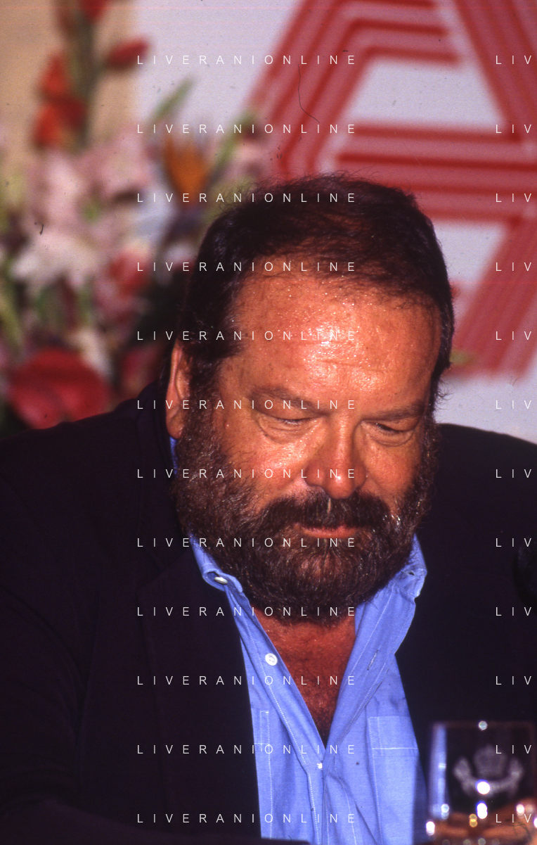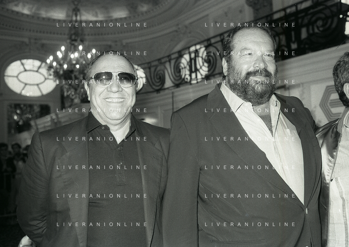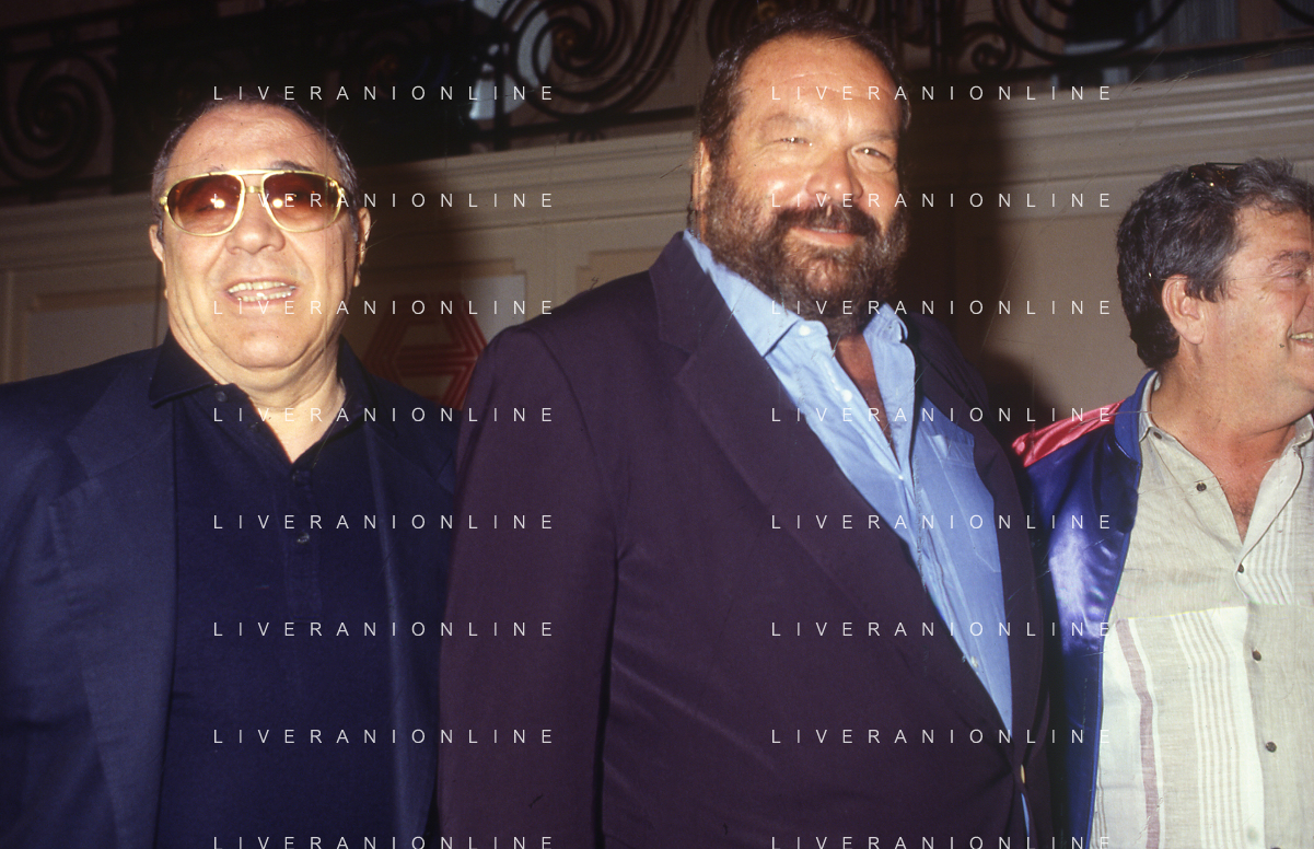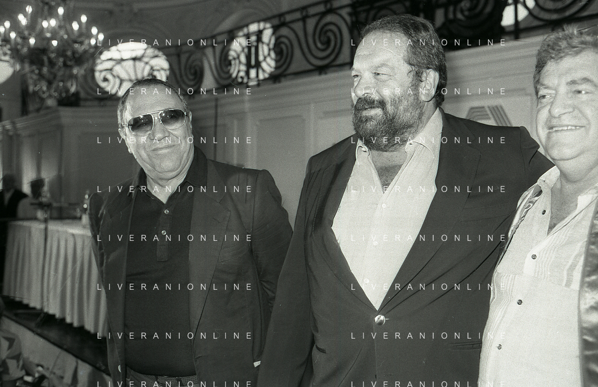 DIAP-RETROSPETTIVA BUD SPENCER PSEUDONIMO DI CARLO PEDERSOLI ATTORE NELLA FOTO BUD SPENCER CON IL REGISTA ELIO CORBUCCI NELL'ANNO 1985 AG ALDO LIVERANI SAS