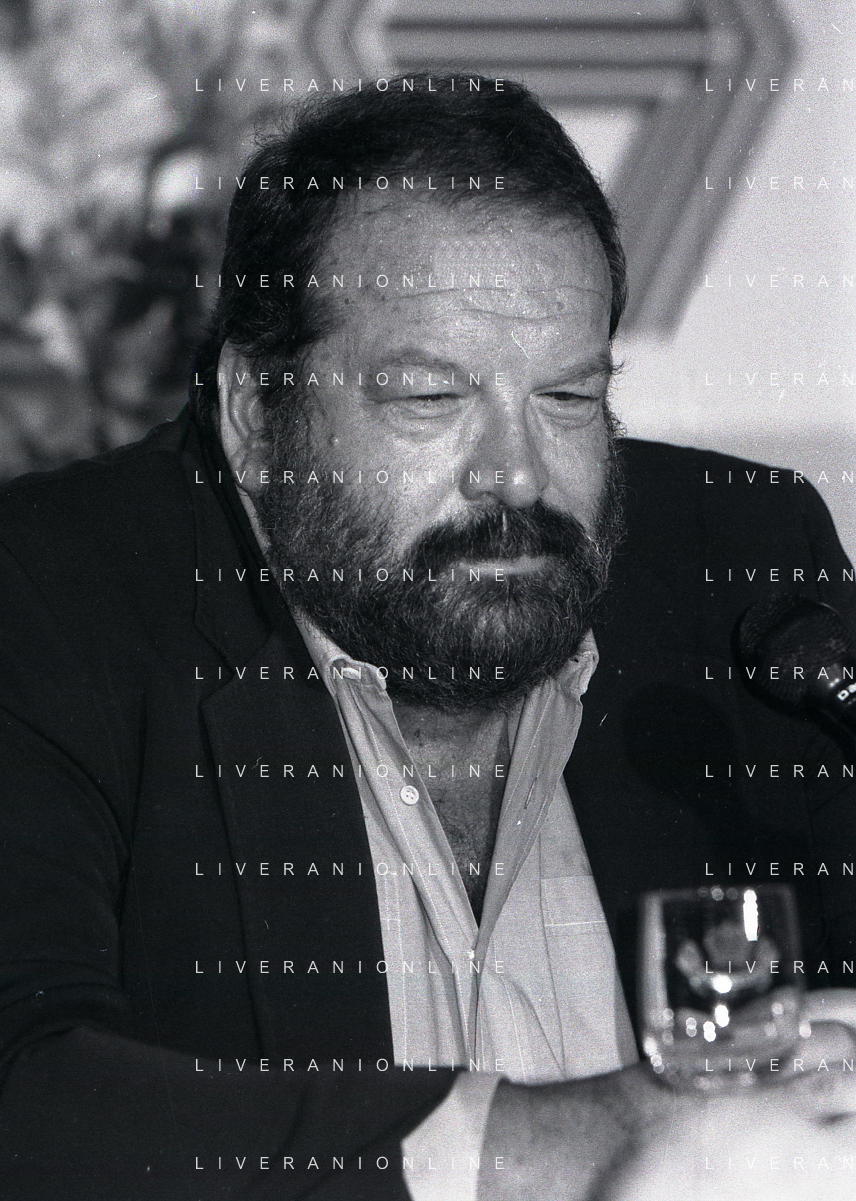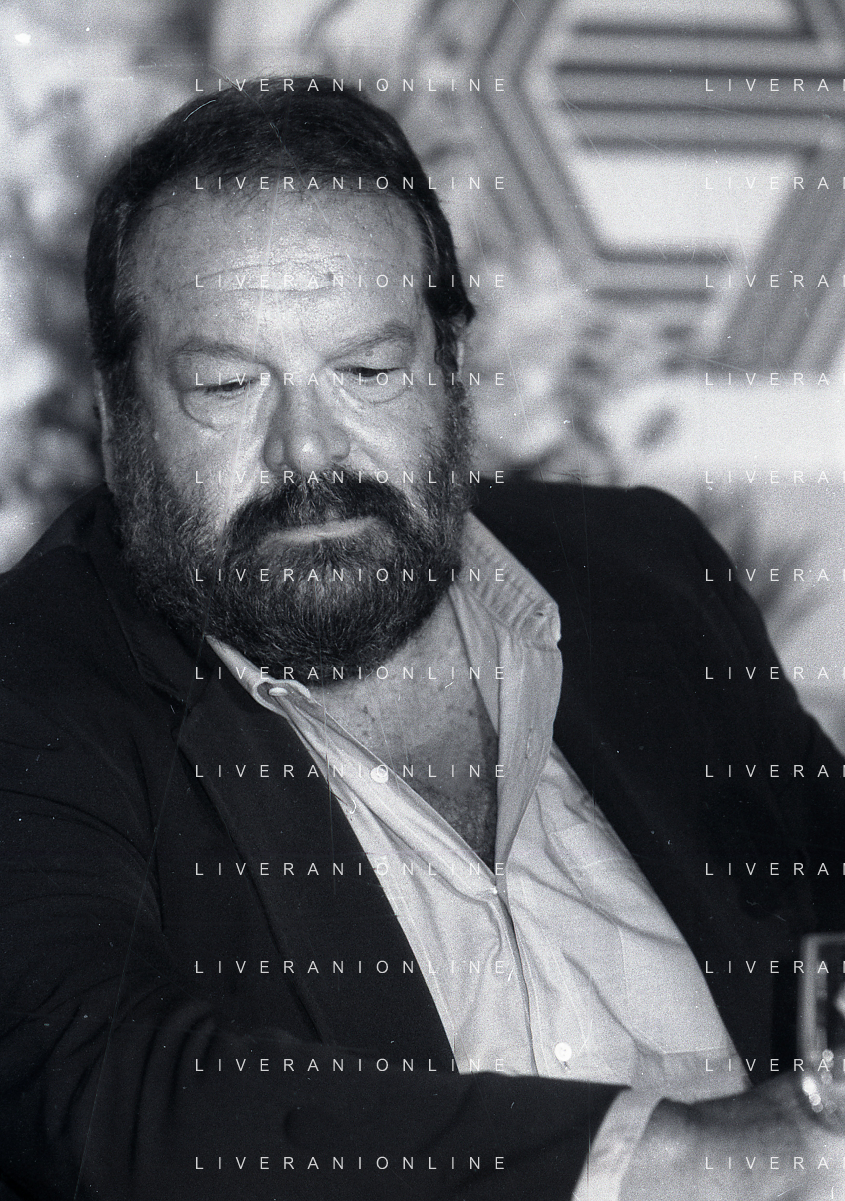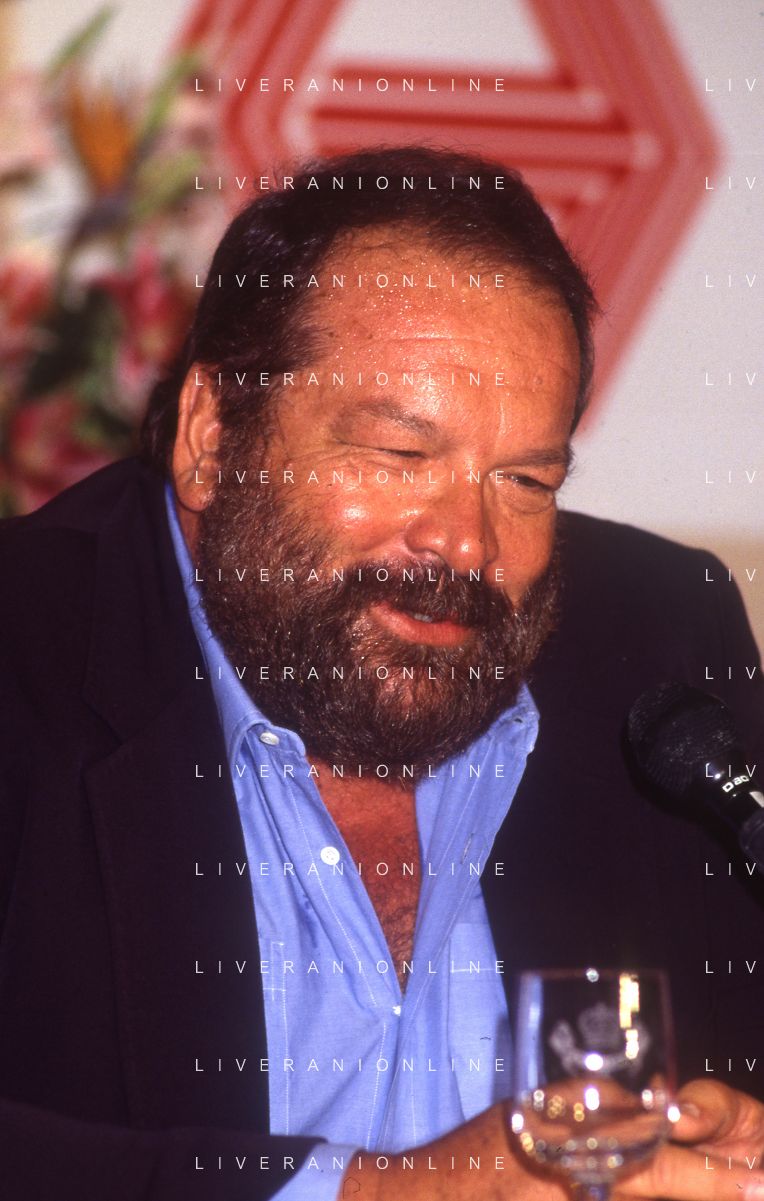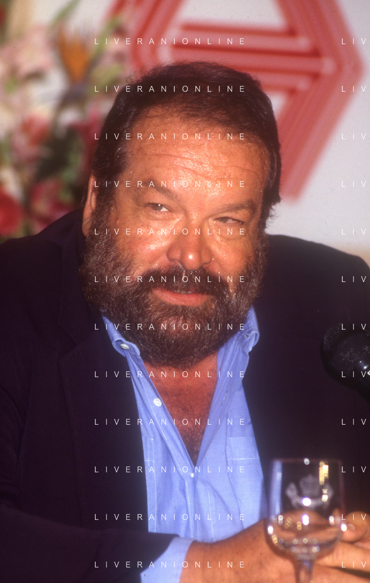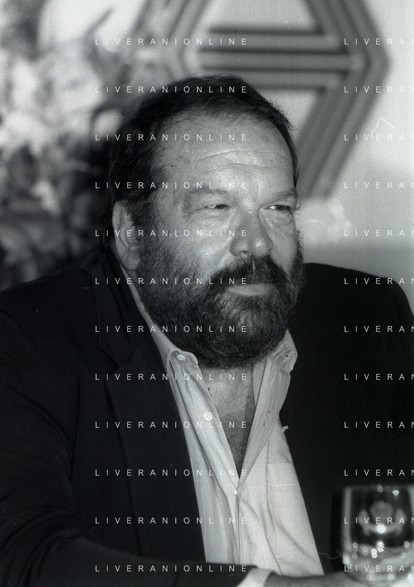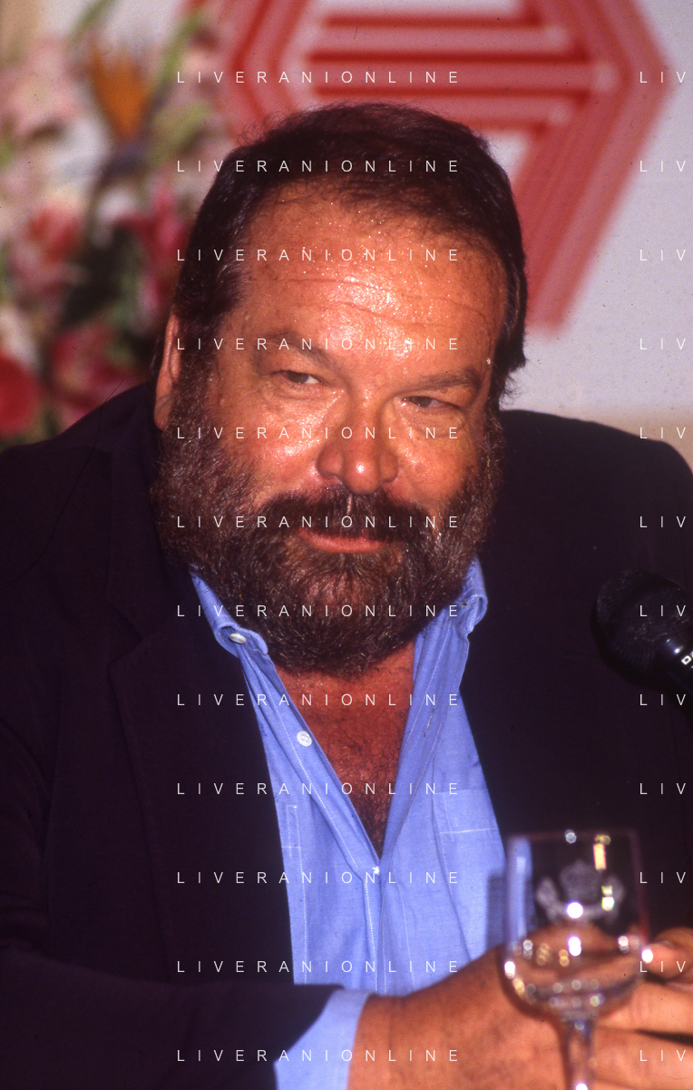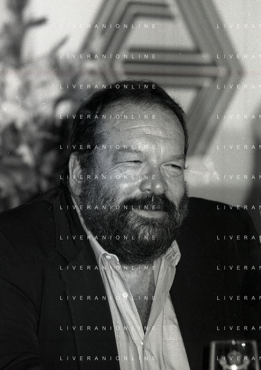 DIAP-RETROSPETTIVA BUD SPENCER PSEUDONIMO DI CARLO PEDERSOLI ATTORE NELLA FOTO BUD SPENCER CON IL REGISTA ELIO CORBUCCI NELL'ANNO 1985 AG ALDO LIVERANI SAS