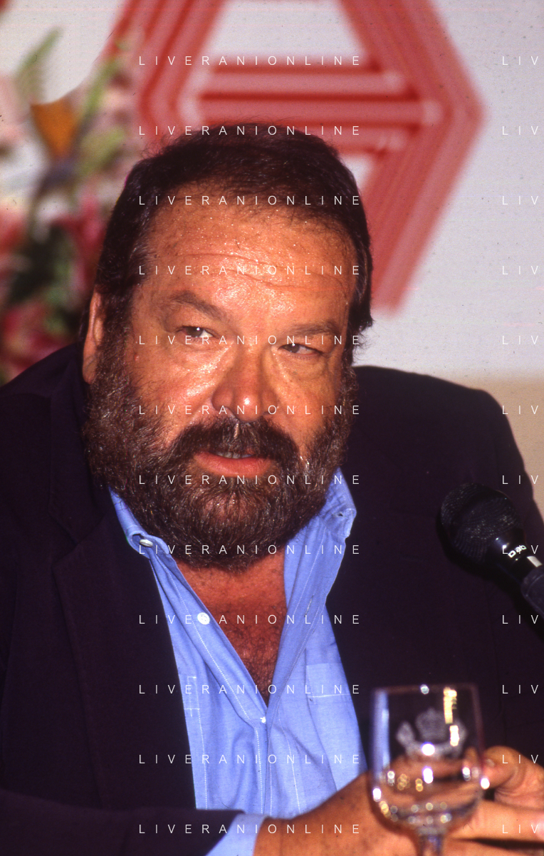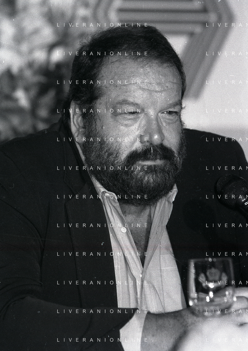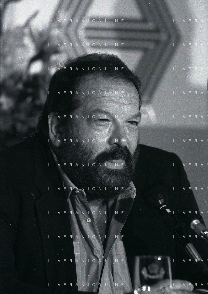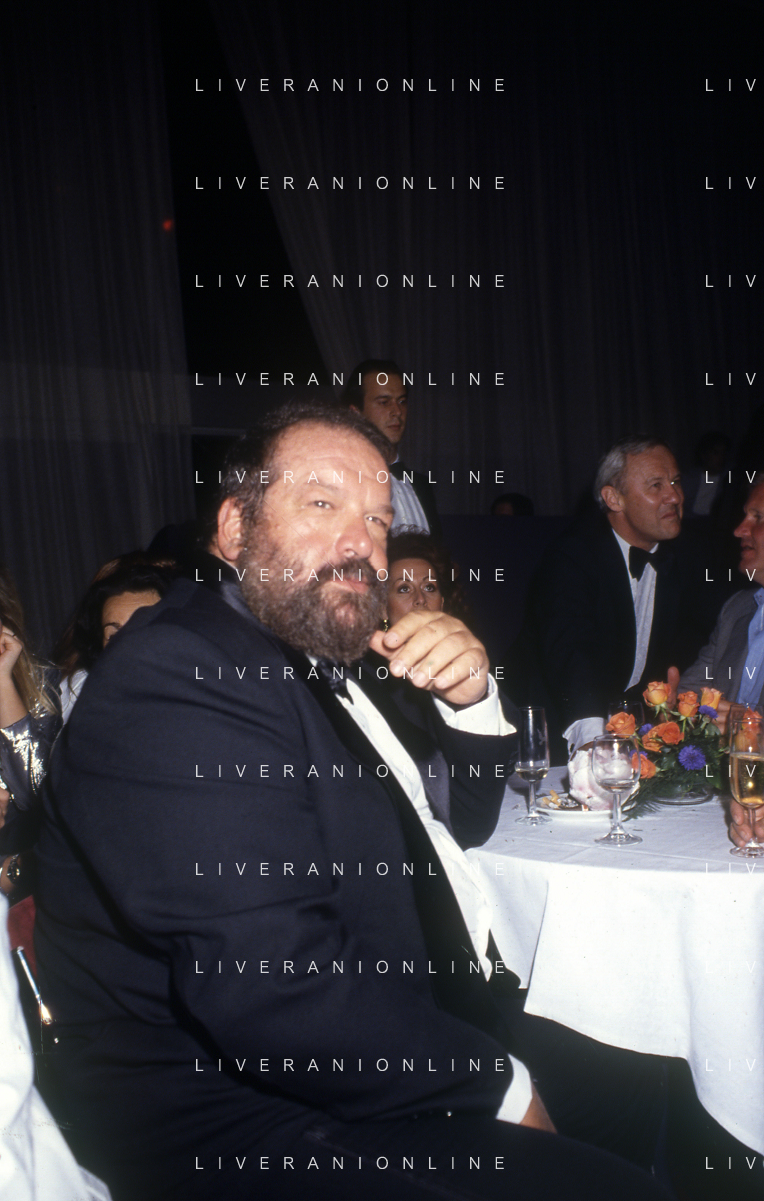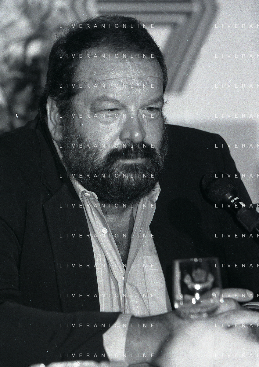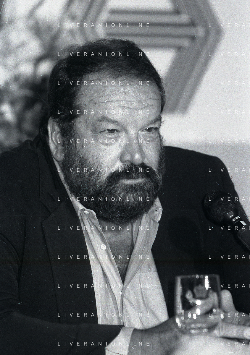 DIAP-RETROSPETTIVA BUD SPENCER PSEUDONIMO DI CARLO PEDERSOLI ATTORE NELLA FOTO BUD SPENCER CON IL REGISTA ELIO CORBUCCI NELL'ANNO 1985 AG ALDO LIVERANI SAS