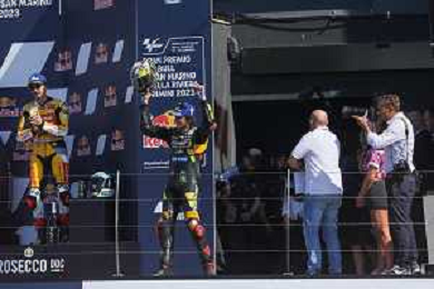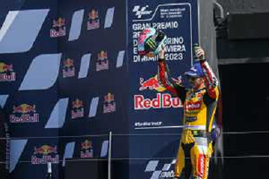 Gran Premio motociclistico di San Marino e della Riviera di Rimini 2023 Gara MotoGP - Misano 10.09.2023. Nella foto Marco Bezzecchi secondo classificato ©Daniele Marangoni/AGENZIA ALDO LIVERANI SAS