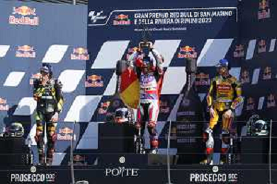 Gran Premio motociclistico di San Marino e della Riviera di Rimini 2023 Gara MotoGP - Misano 10.09.2023. Nella foto Francesco (Checco) Bagnaia Terzo Classificato ©Daniele Marangoni/AGENZIA ALDO LIVERANI SAS