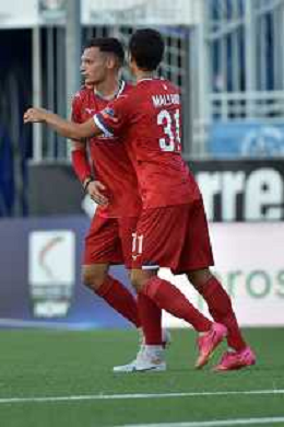 TVRG Novara vs Pro Patria nella foto Leonardo Stanzani (Pro Patria) e Andrea Mallamo (Pro Patria) esultano dopo il gol del 2 a 0 Novara 10-09-2023 Stadio Silvio Piola 2a giornata Campionato Serie C girone A foto Roberto Garavaglia/ag. Aldo Liverani sas