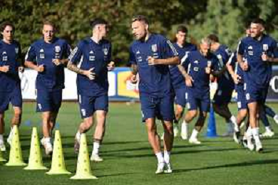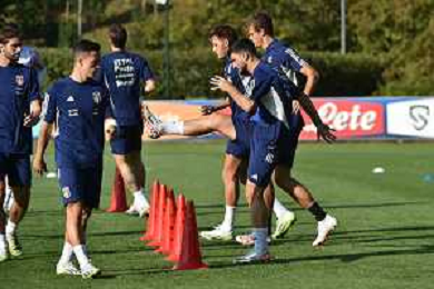 TVRG Allenamento Italia nella foto un momento dell'allenamento Carnago (VA) 11-09-2023 Allenamento della Nazionale Italiana presso il centro sportivo di Milanello in preparazione della gara contro l'Ucraina valevole per le qualificazioni a UEFA Euro 2024 foto Roberto Garavaglia/ag. Aldo Liverani sas