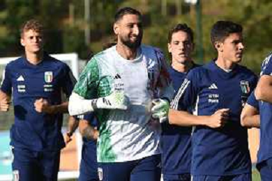 TVRG Allenamento Italia nella foto Gianluigi Donnarumma (Italia) Carnago (VA) 11-09-2023 Allenamento della Nazionale Italiana presso il centro sportivo di Milanello in preparazione della gara contro l'Ucraina valevole per le qualificazioni a UEFA Euro 2024 foto Roberto Garavaglia/ag. Aldo Liverani sas