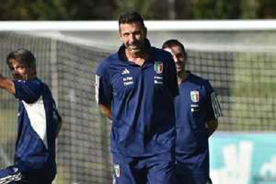 TVRG Allenamento Italia nella foto Gianluigi Buffon capo delegazione Italia Carnago (VA) 11-09-2023 Allenamento della Nazionale Italiana presso il centro sportivo di Milanello in preparazione della gara contro l'Ucraina valevole per le qualificazioni a UEFA Euro 2024 foto Roberto Garavaglia/ag. Aldo Liverani sas