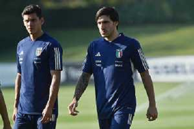 TVRG Allenamento Italia nella foto Matteo Pessina (Italia) e Sandro Tonali (Italia) Carnago (VA) 11-09-2023 Allenamento della Nazionale Italiana presso il centro sportivo di Milanello in preparazione della gara contro l'Ucraina valevole per le qualificazioni a UEFA Euro 2024 foto Roberto Garavaglia/ag. Aldo Liverani sas