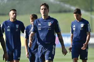 TVRG Allenamento Italia nella foto Nicolo' Zaniolo (Italia) Carnago (VA) 11-09-2023 Allenamento della Nazionale Italiana presso il centro sportivo di Milanello in preparazione della gara contro l'Ucraina valevole per le qualificazioni a UEFA Euro 2024 foto Roberto Garavaglia/ag. Aldo Liverani sas