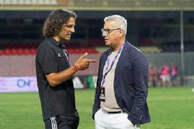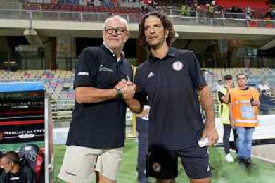 coach Mirko Cudini (Calcio Foggia 1920) and Emanuele Belviso sports manager of Calcio Foggia 1920 during the Italian soccer Serie C match Calcio Foggia vs Giugliano Calcio 1928 on September 11, 2023 at Pino Zaccheria Stadium in Foggia, Italy. Photo by Emmanuele Mastrodonato/ag. Aldo Liverani sas/AGENZIA ALDO LIVERANI SAS