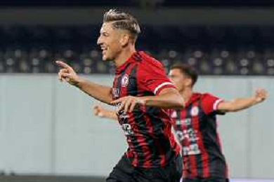 Riccardo Tonin (Calcio Foggia 1920) celebrates after scoring a goal during the Italian soccer Serie C match Calcio Foggia vs Giugliano Calcio 1928 on September 11, 2023 at Pino Zaccheria Stadium in Foggia, Italy. Photo by Emmanuele Mastrodonato/ag. Aldo Liverani sas/AGENZIA ALDO LIVERANI SAS
