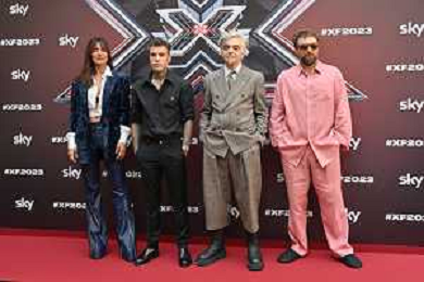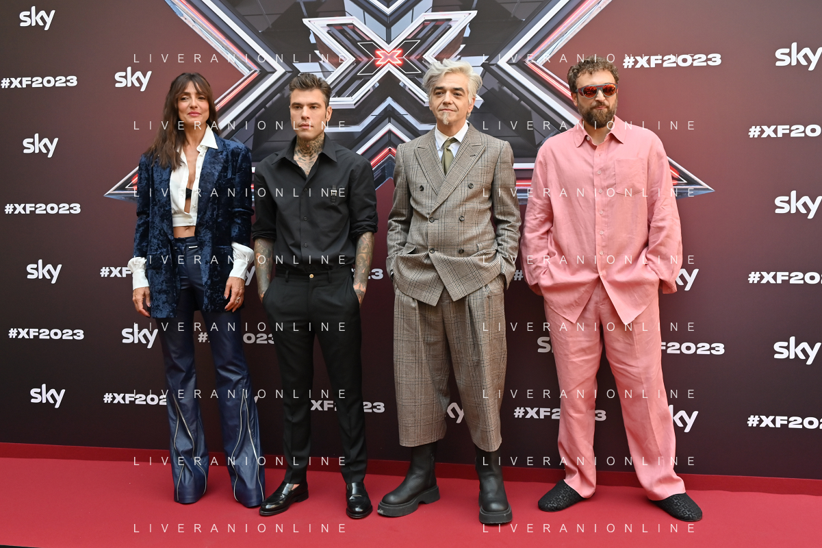 TVRG photocall X Factor 2023 nella foto da SX Ambra Angiolini, Fedez, Morgan e Dargen D'Amico Milano 12-09-2023 Photocall in occasione della conferenza stampa di presentazione di X Factor 2023 foto Roberto Garavaglia/ag. Aldo Liverani sas
