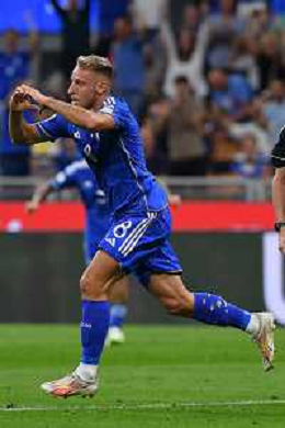TVMV-Milano 12.09.2023 Stadio Giuseppe Meazza ©Manuela Viganti/Agenzia Aldo Liverani Italia vs Ucraina Qualificazioni Europeo 2024 Nella foto: gol davide frattesi ©Viganti/AGENZIA ALDO LIVERANI SAS