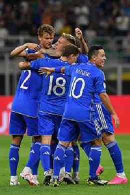 TVMV-Milano 12.09.2023 Stadio Giuseppe Meazza ©Manuela Viganti/Agenzia Aldo Liverani Italia vs Ucraina Qualificazioni Europeo 2024 Nella foto: esultanza italia dopo il gol di davide frattesi ©Viganti/AGENZIA ALDO LIVERANI SAS