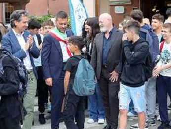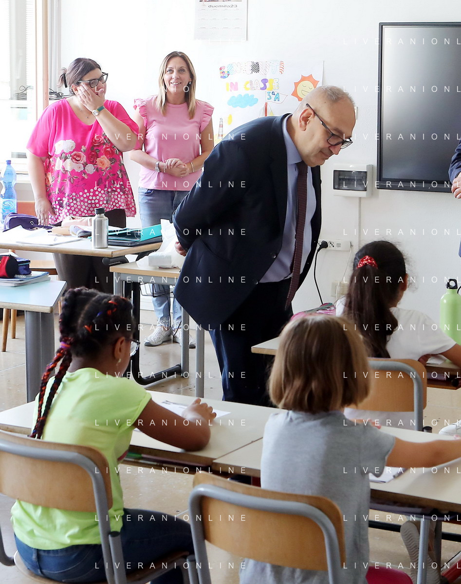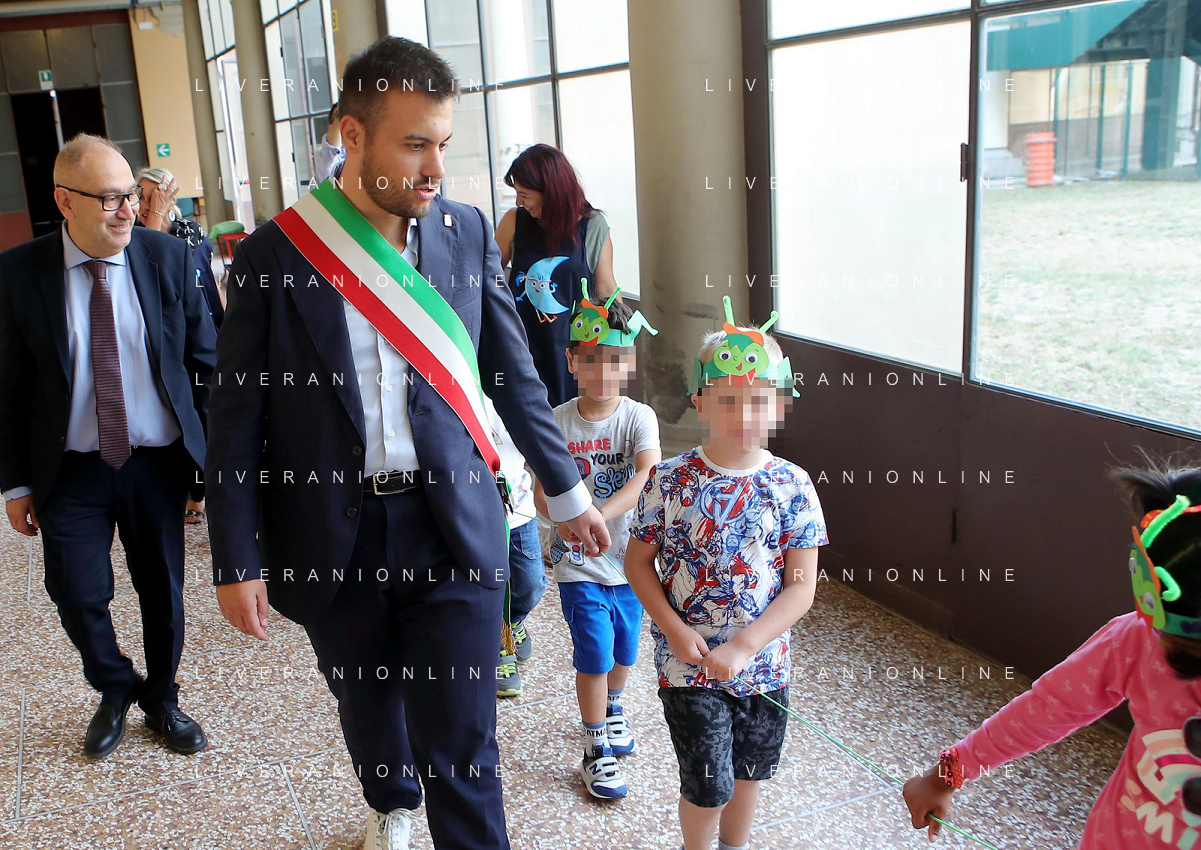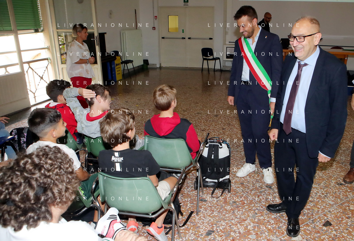 IMOLA 15 09 2023 PRIMO GIORNO DI SCUOLA NELLA FOTO SINDACO MARCO PANIERI E VICE SINDACO FABRIZIO CASTELLARI AL IC 2 CARDUCCI FOTO GIANNI SANNA-AG ALDO LIVERANI SAS