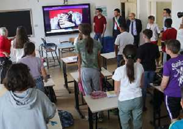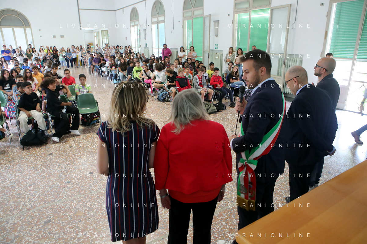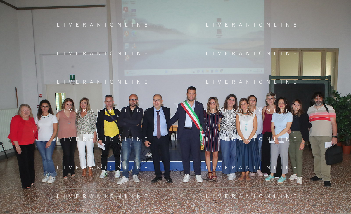 IMOLA 15 09 2023 PRIMO GIORNO DI SCUOLA NELLA FOTO SINDACO MARCO PANIERI E VICE SINDACO FABRIZIO CASTELLARI AL IC 2 CARDUCCI CON GLI INSEGNANTI FOTO GIANNI SANNA-AG ALDO LIVERANI SAS