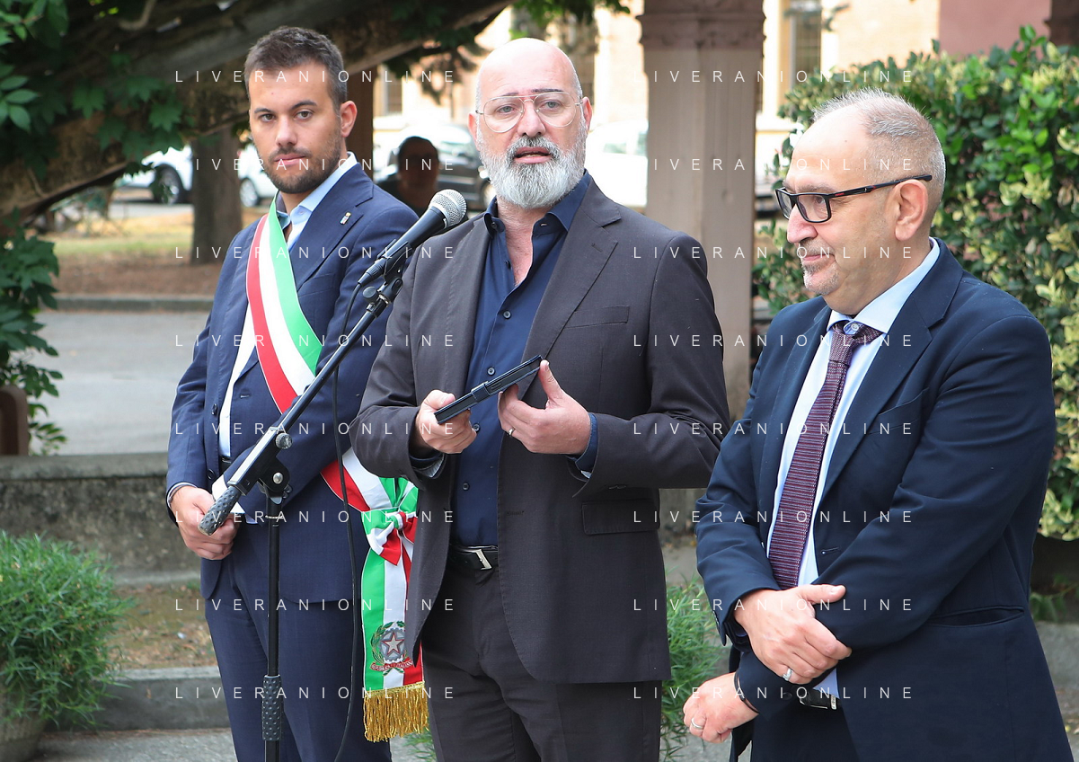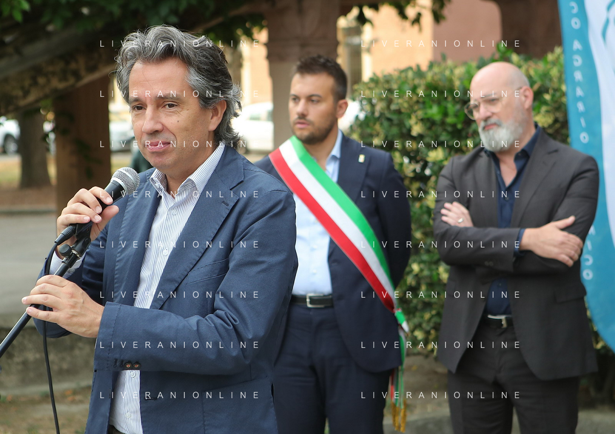 IMOLA 15 09 2023 PRIMO GIORNO DI SCUOLA NELLA FOTO SCUOLA AGRARIA DA SINISTRA SINDACO MARCO PANIERI PRESIDENTE DELLA REGIONE EMILIA ROMAGNA STEFANO BONACCINI E VICE SINDACO DI IMOLA FABRIZIO CASTELLARI FOTO GIANNI SANNA-AG ALDO LIVERANI SAS