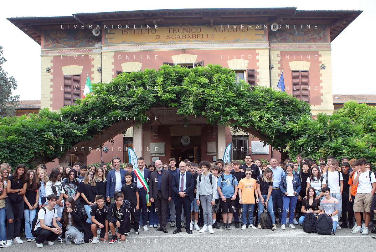 IMOLA 15 09 2023 PRIMO GIORNO DI SCUOLA NELLA FOTO SCUOAL AGRARIA PRESENTI PRESIDENTE DELLA REGIONE STEFANO BONACCINI SINDACO DI IMOLA MARCO PANIERI VICE SINDACO DI IMOLA FABRIZIO CASTELLARI PRESIDE DELLA SCUOLA AGRARIA GIAN MARIA GHETTI CON GLI STUDENTI FOTO GIANNI SANNA-AG ALDO LIVERANI SAS