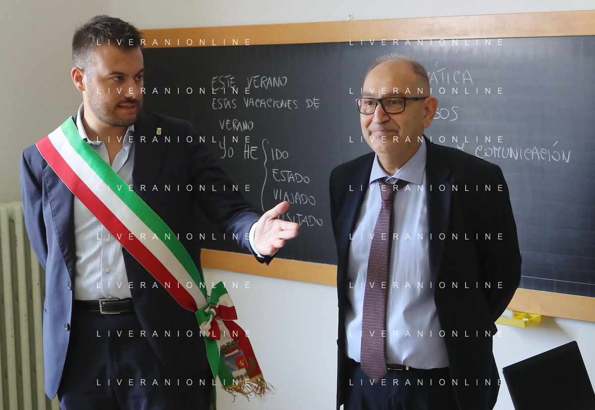 IMOLA 15 09 2023 PRIMO GIORNO DI SCUOLA NELLA FOTO SCUOLA AGRARIA PRESIDE GIAN MARIA GHETTI DIETRO SINDACO DI IMOLA MARCO PANIERI E STEFANO BONACCINI PRESIDE DELLA REGIONE EMILIA ROMAGNA FOTO GIANNI SANNA-AG ALDO LIVERANI SAS