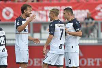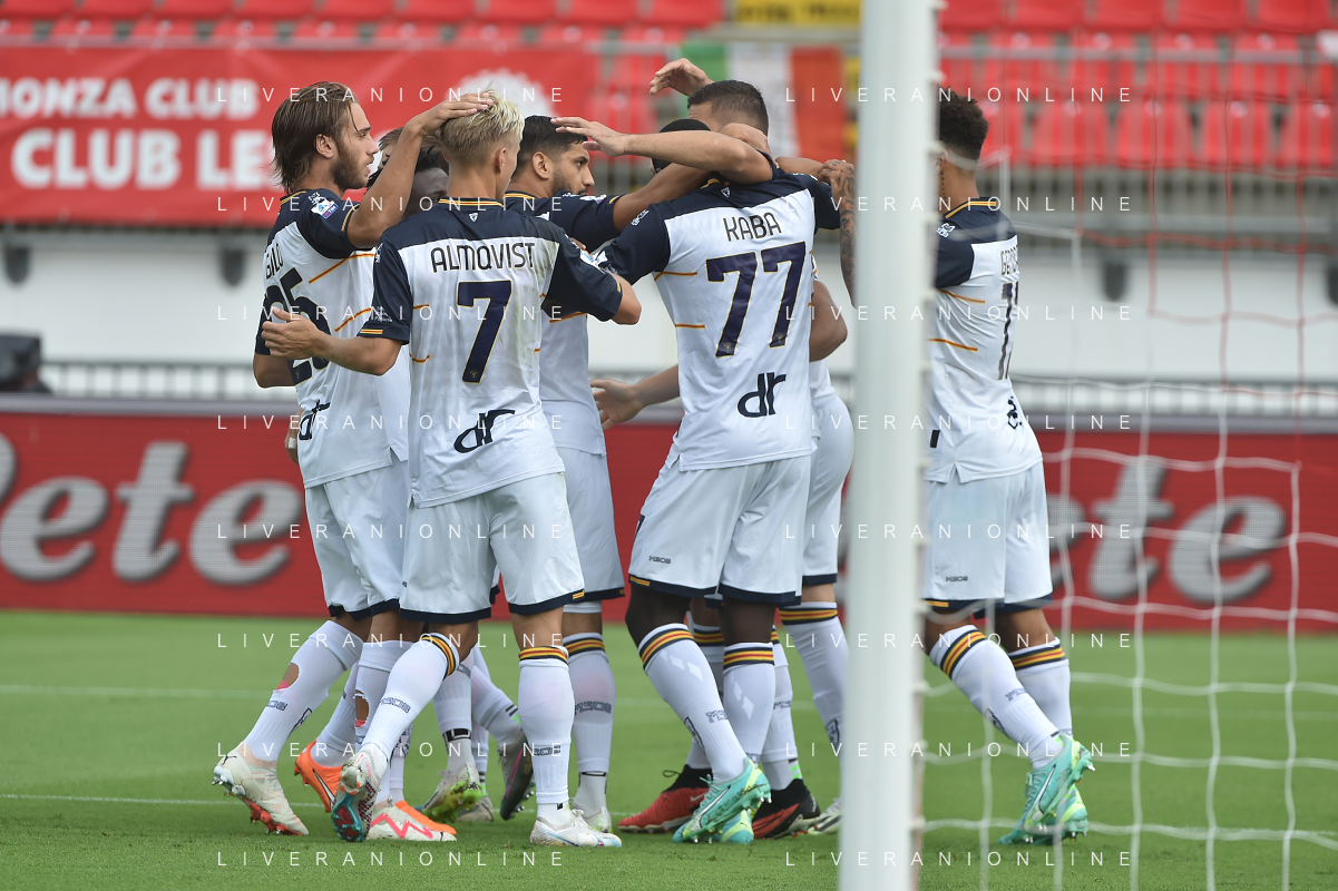 TVRG Monza vs Lecce nella foto esultanza Lecce dopo il gol dell'1 a 0 Monza 17-09-2023 U-Power Stadium Campionato Serie A TIM - 4a giornata foto Roberto Garavaglia/ag. Aldo Liverani sas